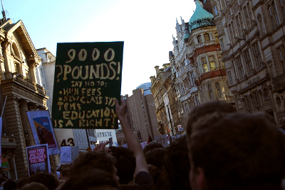 From the early 1990s onwards, there was a rapid expansion in the numbers of universities and students aimed at upskilling Britain to meet the challenges of the knowledge economy. This also increased costs significantly at a time when government was ideologically committed to reducing both taxes and public expenditure. To mitigate this, from 1998 the funding of undergraduate education in England (Scotland, Wales and Northern Ireland have separate systems) was gradually radically transformed to a system where universities now receive virtually no state funding for teaching. Instead, UK and other EU students now pay ‘full fees’, currently limited to £9250 (roughly €10000) a year directly to their university. Universities may charge less than the full fee, but virtually none do so.