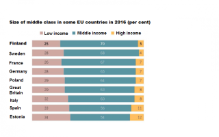 EVA regularly publishes reports of the state of the Finnish society. In spring 2018, EVA reflected on the Finnish middle class. According to its calculations (EVA 2018), two thirds of Finns belong to a category which has fared well. The report says that it is possible to talk about a robust middle class.