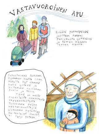 Tekstin kuvitukset on tehnyt kuvataiteilija Anne Savitie. Kuvitukset perustuvat Naapurijurtta-hankkeen aikana tehtyihin haastatteluihin ja hanketyöryhmälle kerrottuihin tarinoihin.