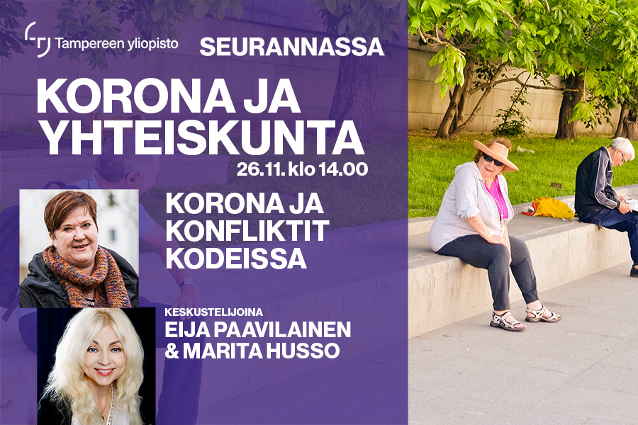 Yhteiskuntatieteiden tiedekunta ja tiedekunnan Alusta-verkkojulkaisu jatkavat kesällä alkanutta Seurannassa-keskustelusarjaa, jossa Tampereen yliopiston tutkijat ja muut asiantuntijat pohtivat, miten koronan kanssa eletään, miten se vaikuttaa yhteiskuntaan, millaisia mahdollisuuksia ja ongelmia se luo. Seurannassa-keskustelusarjaa juontaa ja organisoi Alusta-verkkojulkaisun toimittaja Tiina Heikkilä.