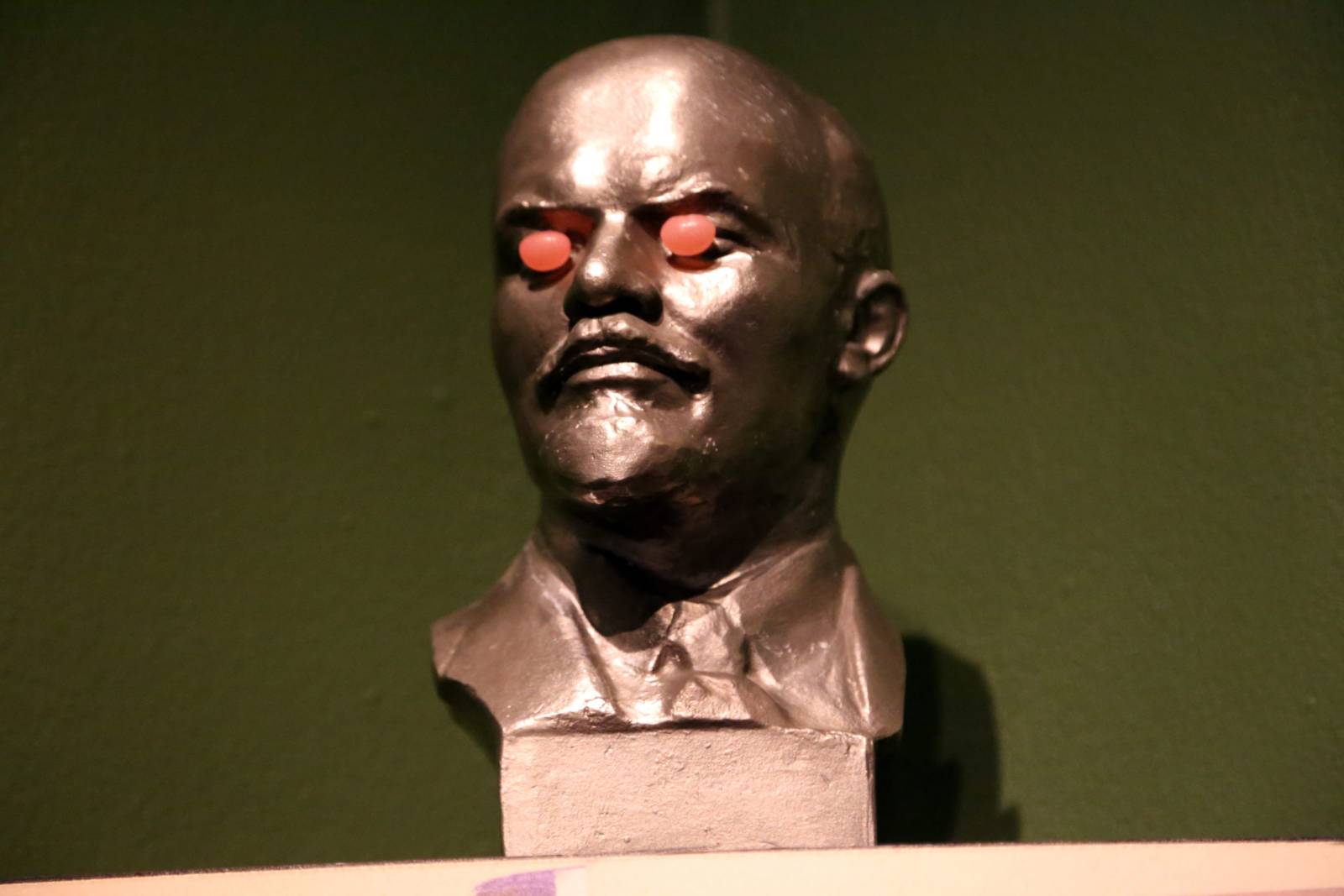 Koulurakennuksen toisessa kerroksessa oli puinen Leninin rintakuva. Veistoksen tyhjät silmäkuopat olivat juuri sopivan kokoiset pyöreille karamelleille. Pää oli riittävän korkealla, etteivät koulun pääosin naispuoliset opettajat yltäneet kaivamaan niitä omiin taskuihinsa.