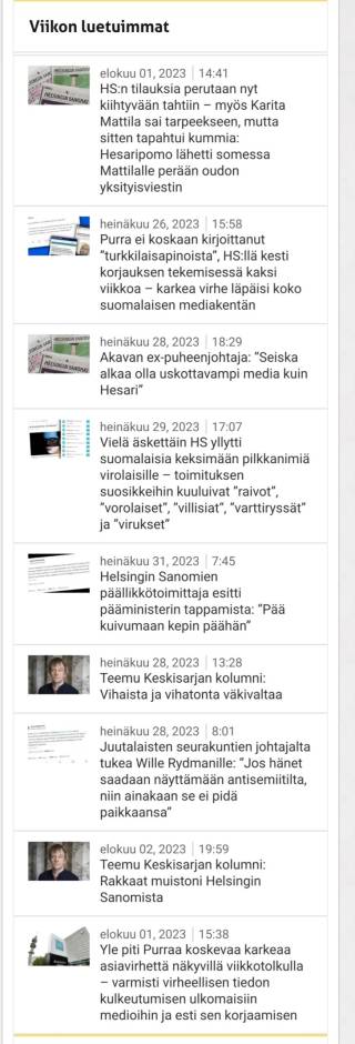 Kuvakaappaus, Suomen Uutiset 3.8.2023