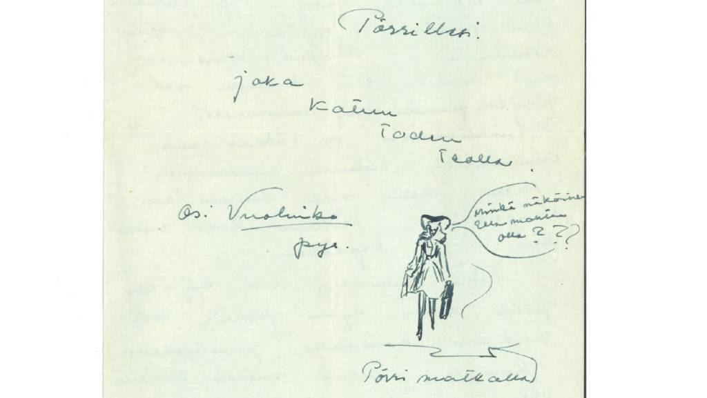 ”Nyt minun täytyy kertoa sinulle jotain, mikä saattaa suututtaa sinut ja saada sinut lopettamaan kirjoittamisen minulle. Asia on niin, että en ole kotoisin Hämeestä, kuten ehkä oletit, vaan Karjalasta. Suututtaako se sinua? Näemme sen. Olet ihana, jos se ei suututa. Äitini ja isäni muuttivat takaisin Viipuriin viime kuussa.”
