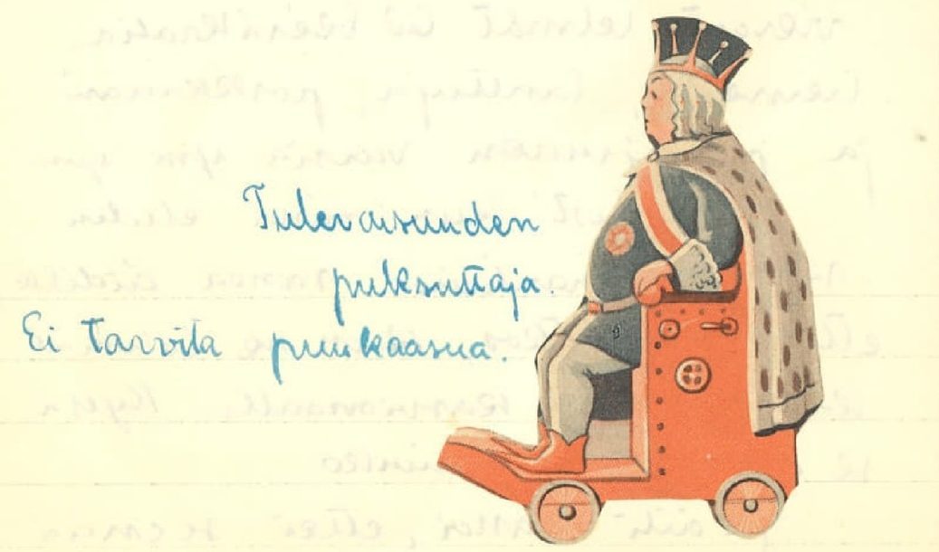 Kuva 3. Kirjeissä kulki mukana pikkulahjoja kuten kiiltokuvia ja kirjepaperi valittiin huolella. Erikoispaperistakin ja musteesta alkoi lopulta olla pulaa. Kirjeisiin sisältyi humoristisia viittauksia sota-ajan olosuhteisiin.