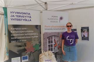 Kansalaistorilla oli mahdollista tutustua tarkemmin ASTe-hankkeeseen ja Porin yliopistokeskukseen sekä testata tietojaan yo-keskuksesta leikkimielisessä Kahoot!-tietokilpailussa. Tieto UCPorista ja sen opiskelijoiden asiantuntijuudesta välittyi edelleen myös muun muassa kävijöille jaettujen Säikeitä-julkaisujen välityksellä. Moni yliopisto-opinnoista kiinnostunut löysi tiensä teltalle, minkä lisäksi tavoitimme ASTe-hankkeen keskeisimpiin kohderyhmiimme kuuluvia opiskelijoita, akateemisesti koulutettuja työnhakijoita ja sote-alan palveluntuottajia. Jaettu telttapiste tarjosi lisäksi tilaisuuden hedelmälliseen verkostoitumiseen ja kokemusten vaihtoon muiden EU-hankkeiden kanssa; se auttoi löytämään yhteisiä nimittäjiä eri kohderyhmien eteen työskentelevien työllistymistä edistävien hankkeiden välillä.