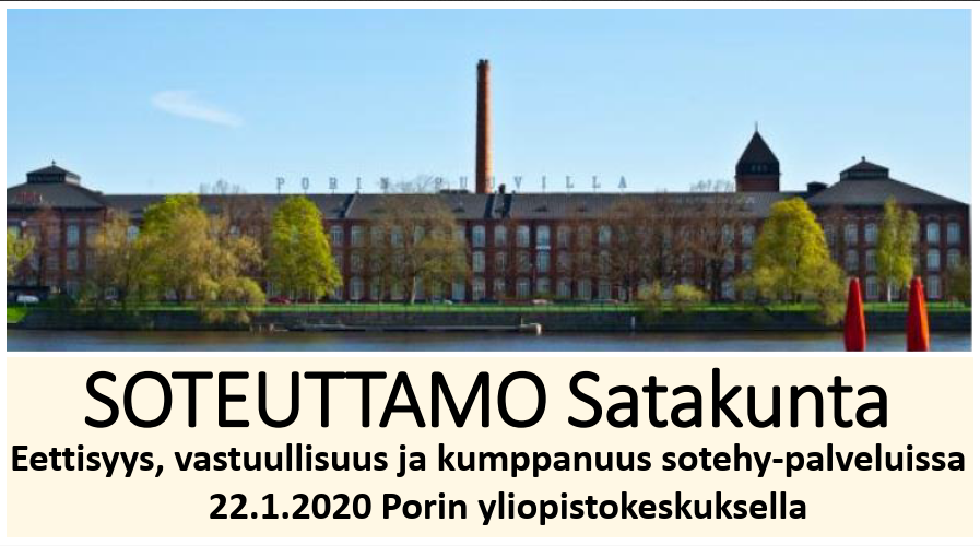Satakunnassa vuoden ensimmäinen Soteuttamo järjestettiin keskiviikkona 22.1. klo 8.30-11.30 Porin yliopistokeskuksella. Sen järjestivät Turun yliopiston kauppakorkeakoulun Porin yksikön KumppanuusAkatemia (EAKR) –hanke sekä Tampereen yliopiston (yhteiskuntatieteet, Pori) ASTe (ESR)- ja Kampus-Sote (EAKR) –hankkeet. Tilaisuus oli suunnattu yksityisen, kolmannen ja julkisen sektorin toimijoille sekä kaikille hyvinvointipalveluiden kehittämisestä kiinnostuneille, myös korkeakouluopiskelijoille.