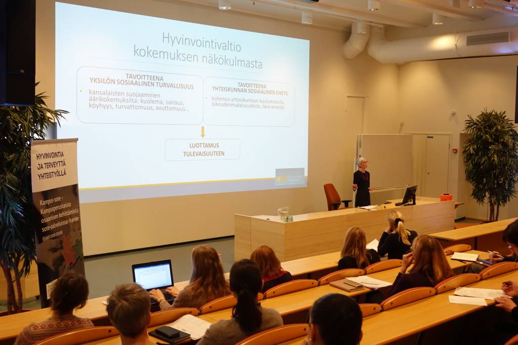 Hyvinvointivaltion historian tarkasteleminen kokemuksiin keskittyen avaa uusia näkökulmia kehitykseen, jota selitetään usein lainsäädäntöreformien kautta. Paikallisella ja ihmisten arkielämän tasolla hyvinvointivaltio on usein konkretisoitunut ammattilaisten/viranomaisten ja asiakkaiden/kansalaisten kohdatessa toisensa erilaisissa institutionaalisissa kehyksissä, kuten koulutuksessa, terveydenhuollossa tai sosiaaliturvaan liittyen. Hyvinvointivaltion kehitys ei ole ollut itsestään selvää eikä aina suoraviivaista, mutta se on teoreettisesti jaoteltavissa kausiin esimerkiksi sen mukaan, mitä hyvinvointipolitiikan sektoria ja minkä ryhmän palveluita on erityisesti pyritty parantamaan. Luennolla muutosta katsottiin erityisesti lapsi- ja perhepalveluihin ja lapsiperhe-etuuksiin, köyhäinhoitoon sekä kansaneläkkeeseen liittyvien kokemusten näkökulmasta.