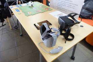 Kuvat 8 ja 9. Kehittämishankkeita esillä Porin yliopistokeskuksen aulassa.