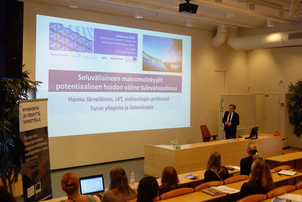 Erikoissairaanhoitoa edusti sisätautiopin professori Hannu Järveläinen (Turun yliopisto/Satasairaala). Jos Minna Harjula edusti puhujista menneisyyttä ja Juho Saari sekä Heidi Luotolahti-Pitkäranta nykypäivää, niin Järveläisen puheenvuoro suuntautui selkeimmin kohti tulevaisuutta. Hän kertoi dekoriini-molekyyliin pohjautuvasta geeniterapiahankkeesta ja sen tuloksista. Tarkemmin ottaen tämä lääketieteen tutkimukseen liittynyt puheenvuoro käsitteli sitä, miten soluväliaineen makromolekyylit voisivat olla potentiaalinen hoidon väline tulevaisuudessa. Nykyään tiedetään, että soluväliaineen eri makromolekyylit osallistuvat solujen käyttäytymisen säätelyyn. Esimerkiksi dekoriini-molekyylin on havaittu estävän syöpien leviämistä. Järveläinen kumppaneineen onkin keskittynyt selvittämään dekoriinin ilmentymiä erilaisissa ihmisen syövissä. Tutkimusten lopullisena tavoitteena on kehittää dekoriiniin pohjautuva geeniterpia syöpien uudeksi liitännäishoidoksi tulevaisuudessa.