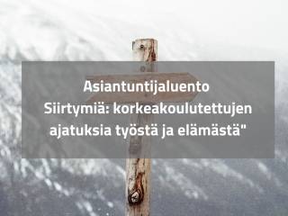 YTT Eriikka Oinosen asiantuntijaluento ”Siirtymiä: korkeakoulutettujen ajatuksia työstä ja elämästä”