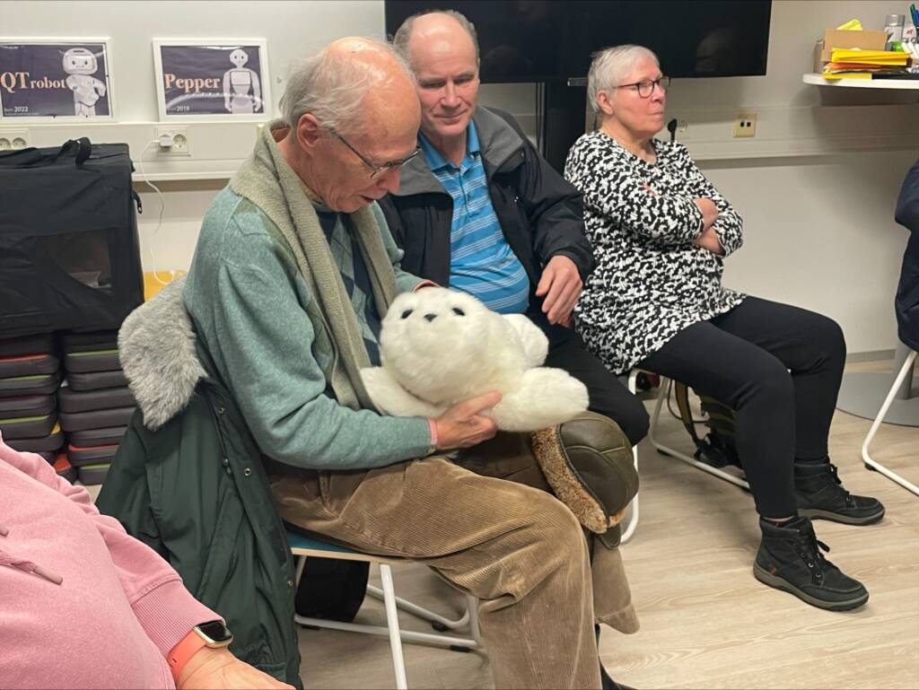 Lopuksi kaikki saivat vuorotellen ottaa Paron syliin ja kokeilla, miltä se tuntuu. Paro jakoi tapansa mukaan mielipiteitä, toiset tykkäsivät kovasti ja toiset eivät niinkään. Kaikille oli kuitenkin mielenkiintoista kokeilla sitä, ja tutustuimme vähän siihen, missä kaikkialla Parossa sijaitsee kosketussensoreita (vastaus: turkissa ja viiksissä).
