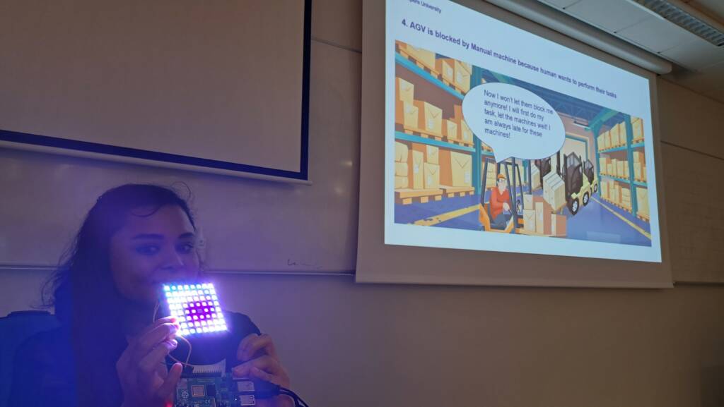 As we chatted, we started imagining funny situations. One idea that made us laugh was thinking about what an AGV would do if it found a dead rat in the warehouse. We joked about whether it would try to figure out what happened to the rat or just avoid it altogether. Or if it would cause more issues and would block the AGV’s path. It was a silly moment that helped lighten the mood and remind us to keep things fun during our research.