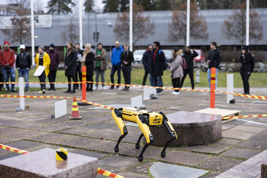 The competition was organized to introduce Spot to a wider audience. The event was kicked off by Aino Ahtinen (mother of robots) and Juho Hamari (professor, Faculty of Information Technology and Communication Sciences) where they explained the agenda of the day and revealed Spot’s new name, TAssU Spot Robonen! The event was followed by Spot agility competition and demonstration of robot demos which are developed by Robostudio’s students and researchers.