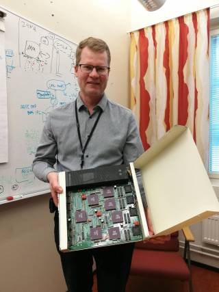 The picture below features the first neural network computer developed by Timo Hämäläinen between 1993 and 1996. The first wave of artificial intelligence made use of this machine until late 1990s. Hämäläinen worked with digital technology as hardware designer.