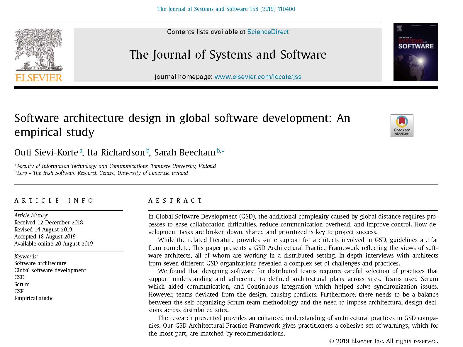 In 2014, I started an Academy of Finland funded project GloFuMe, where I studied software architecture design in the context of global software development. A lot of core work was done in collaboration with Lero – the Irish Software Research Centre. The tale behind our Systematic Literature Review (SLR) has been told in a previous post: The Yellow Brick Road to a JUFO 3 Publication.