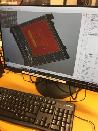 When the design is sliced, the program creates a small file of the design that can be moved to an SD card. To print the design, take the SD card from the printer you’ve booked, move the file there at the computer, and then put it back into the printer. More details about this are available in FabLab and the staff is very helpful if you need any support.