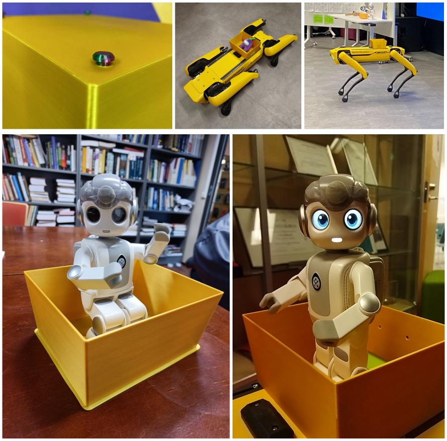 *** Note: The basket was designed to keep AlphaMini stationary when Spot is moving. AlphaMini is unable to move when attached to the basket and the interactions we programmed for were carefully picked and tested to make sure there is no feet movement during any of the actions. Such movements may damage AlphaMini and the basket. So please pay attention to the programming of AlphaMini if you are using the basket.