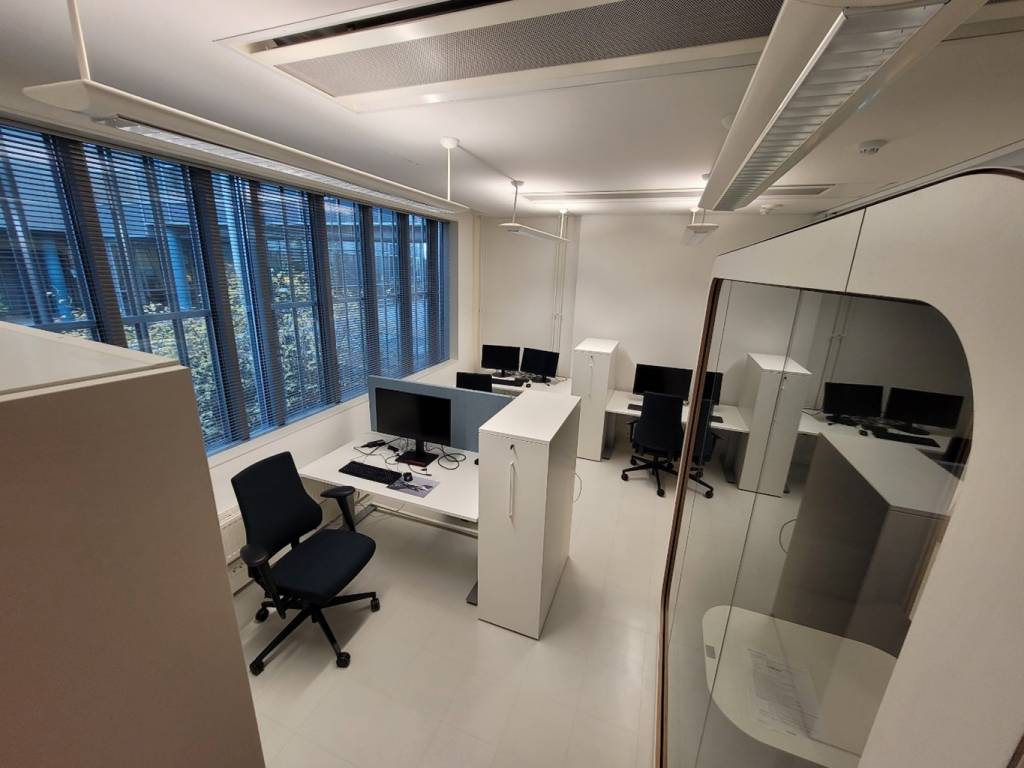 The coworking space in 0-floor of Pinni B does not utilize the area any more efficiently than two-persons per room packing in normal offices would. It takes the space of three offices and there are 5 workstations plus the Framery cubicle. My guess is that the Framery cubicle will not be used for full-day work sessions. It is not very comfortable.