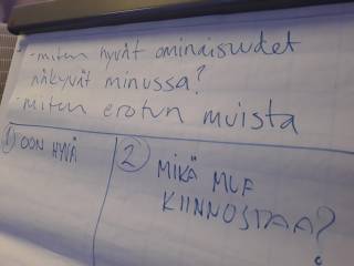 Minun osuuteni meidän yhteisen päivämme kulusta oli herätellä ajatuksia ja keskustelua siitä keitä me ollaan ja mikä kaikki minuuteen ja sinuuteen vaikuttaa. Asia on tosi lähellä mun sydäntä ihan oman oppimisenikin kannalta ja olin tehtävän annosta kovin innoissani. Kävin mielessäni keskustelua läpi monta kertaa ja siitä huolimatta se vähän jännitti. Nuoria emme siis ennalta tunteneet, mikä antoi jännitysmomenttiin kertoimia. Ei niinkään asiani läpivienti vaan se kuinka ne ottavat meidät vastaan.