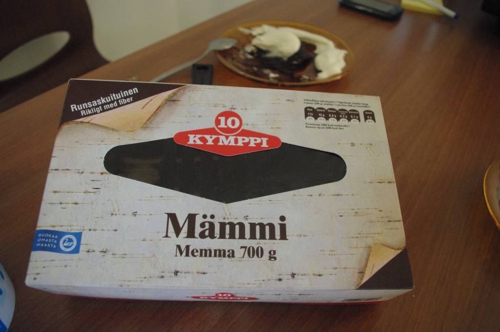 We found in the shop Polish brewery beer called “Pierwsza pomoc” what means “First aid”. We were really surprised. As everyone knows, Easter Holidays are coming. That’s why we found Mämmi in the shop! Of course, we bought it, to try something typical for Finland. As Elisa said, we prepared it with cream. Mämmi is traditionally made of water, rye flour, and powdered malted rye, seasoned salt, and dried powdered Seville orange zest. Yummy!