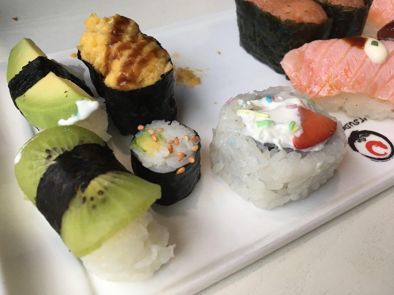 We met at restaurant Itsudemo for sushi buffet lunch since both Meguru and I had never been there before and wanted to try it out. There were some types of sushi which Meguru said he’d never seen in Japan, such as corn and kiwi sushi. Not to mention one that had whipped cream, strawberry and banana in it, like a cake. I’d never seen such sushi before either. As for the taste, you’ll know when you try. But I won’t be doing that again… The lesson: It’s good to appreciate other countries’ culture and even combine with your own, but often things are better left alone if you don’t know what you’re doing. Well, at least the sushi was fun to take photos of.