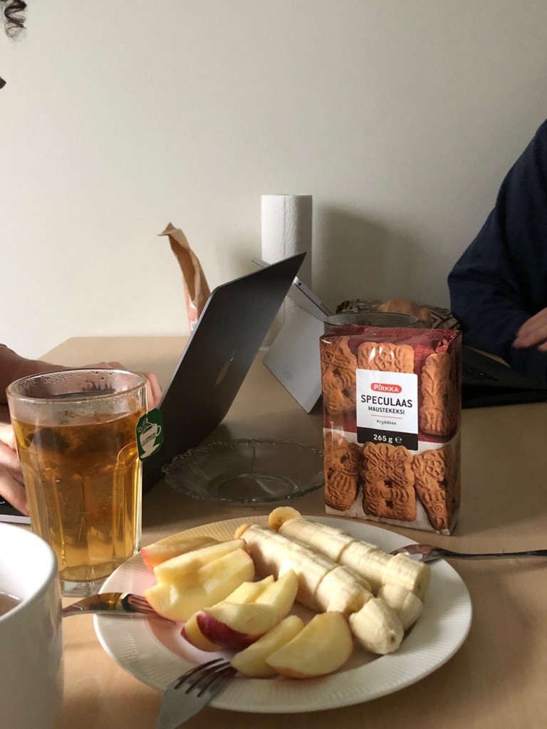 For our third meeting we wanted to get into the Christmas mood and bought Spekulatius, a kind of cookie germans eat during Christmas time. But I also found them in Finland quite often so they are probably quite common Christmas cookies in Europe. Meanwhile we drank tea and talked about Christmas traditions in Germany and Korea.