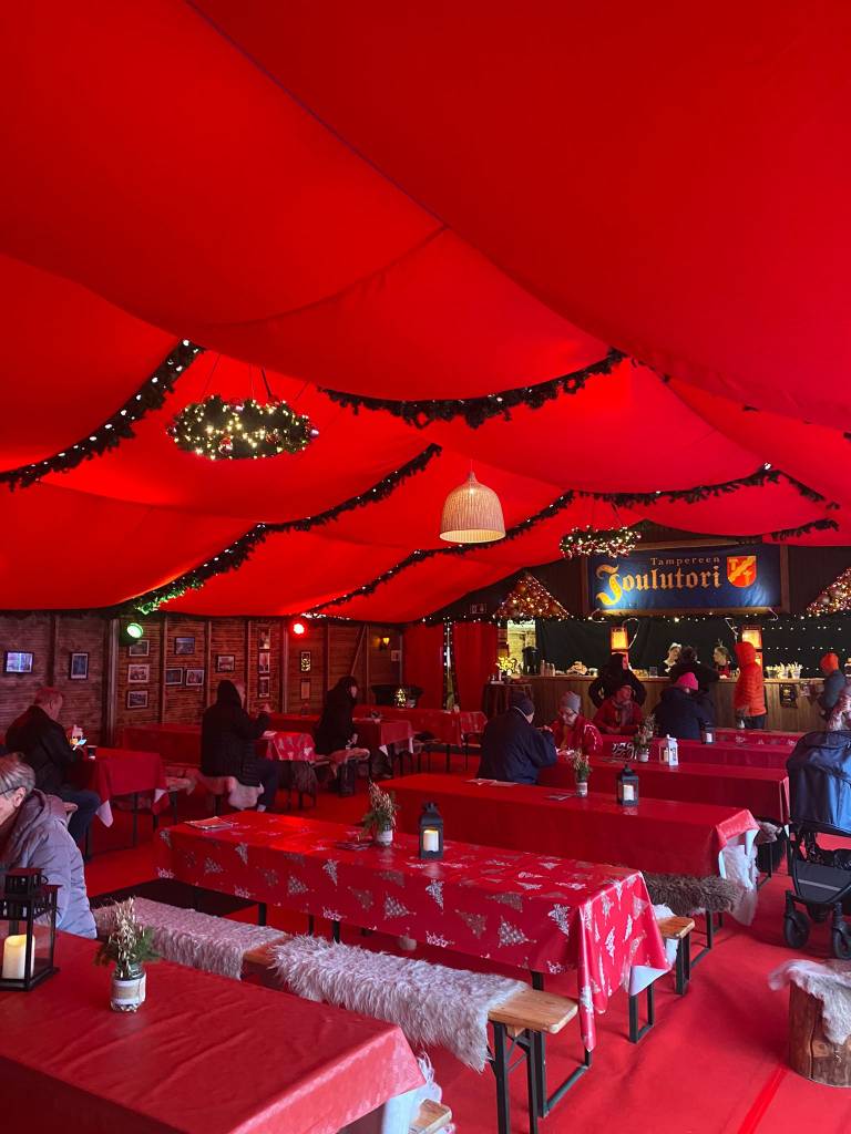 And so, it was our last meeting of the semester. Since the week had been busy for everyone, we decided to meet at the Christmas market in Tampere. We tried various dishes, but I stuck with something traditional—sausages—while Minju, Emese, and Yang were more adventurous and chose typical local dishes.