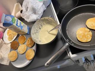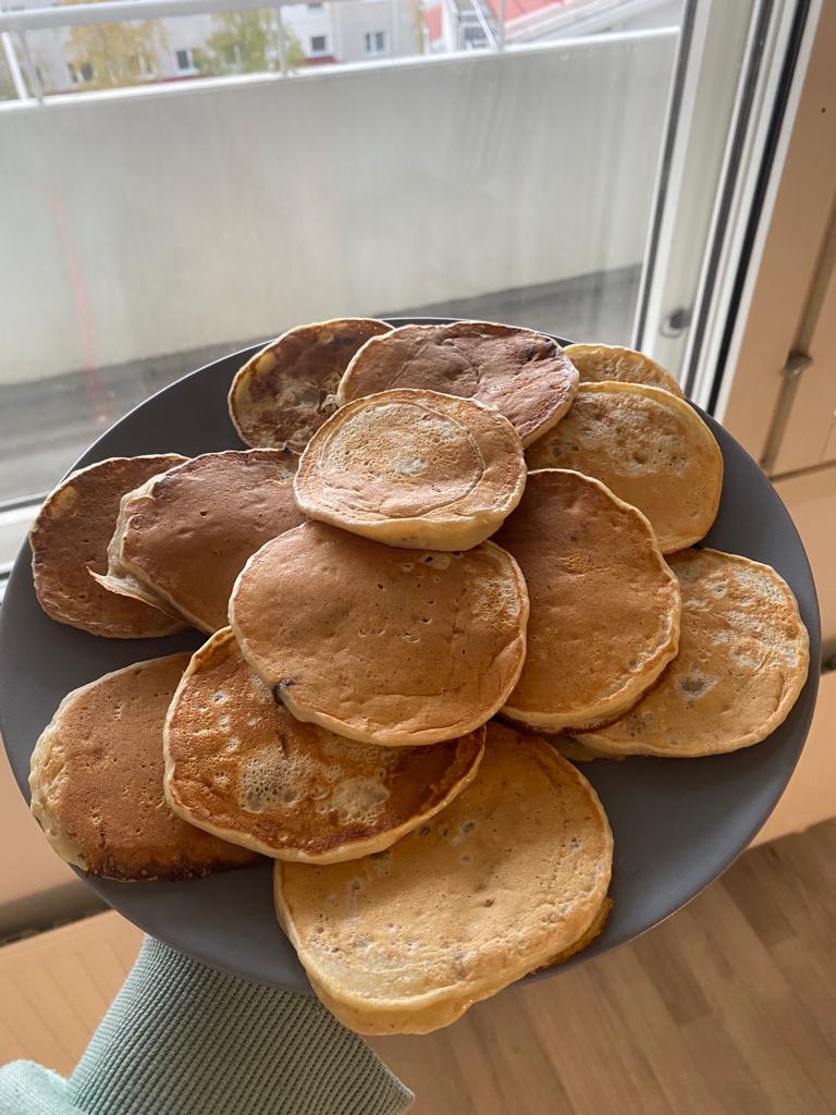 Hi! As you can see, in our next meeting on Oct 15th we made some vegan pancakes! I think we are loving cooking meetings in which we can enjoy the food while talking and learning. This time we met after lunch to “merendar” as we say in Spain, which is a snack between lunch and dinner. Chiara was the chef teaching me, as I had never done vegan pancakes before. We made them with banana (instead of egg), oat milk and flour. In the image you can see the process! We ate them with some chocolate cream while talking about food, our countries and practising the names of the ingredients in German and Spanish. We spent the whole evening together, it was cool 🙂