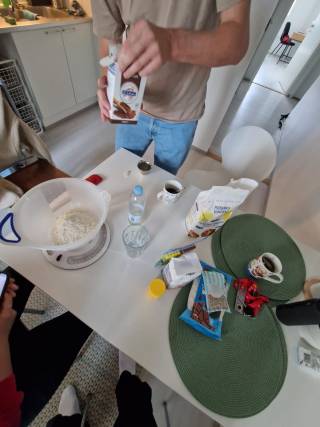 Gutentag! For our second meeting, me and my group decided to make two German vegan cakes. Germans are known for their baking skills and are one of the best countries when it comes to baking. I’ve never baked a cake in my life so I really enjoyed doing this. Both cakes we made our eaten very often back in Germany. Jojo told us some interesting facts about Baking. I learned that the Pretzel is a German based baked snack. The cakes both tasted very good and I enjoyed making them with my group a lot. This was a very cute start of the day and I will definitely make a German cake again soon!