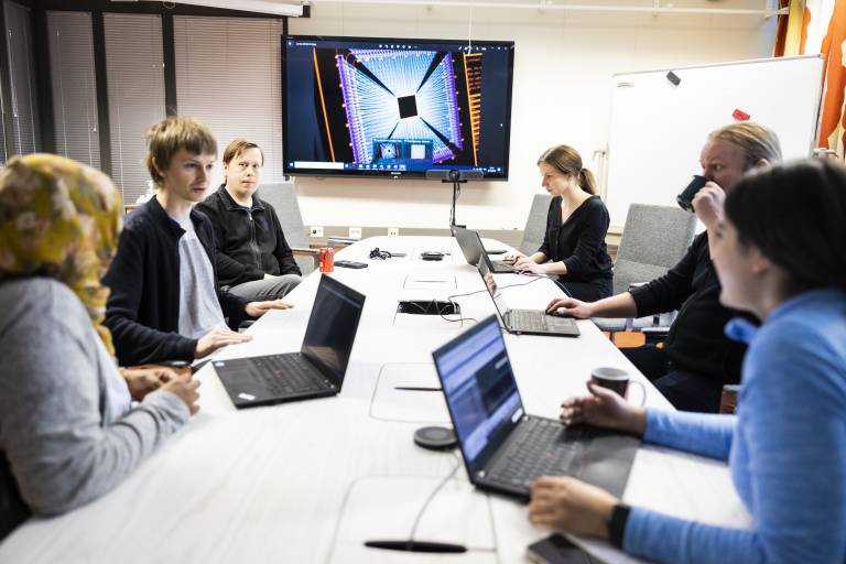 Kuvassa Pekka Verho, Sergey Andreev, Mikko Valkama, Timo Hämäläinen, Esa Rahtu ja Sampsa Pursiainen.