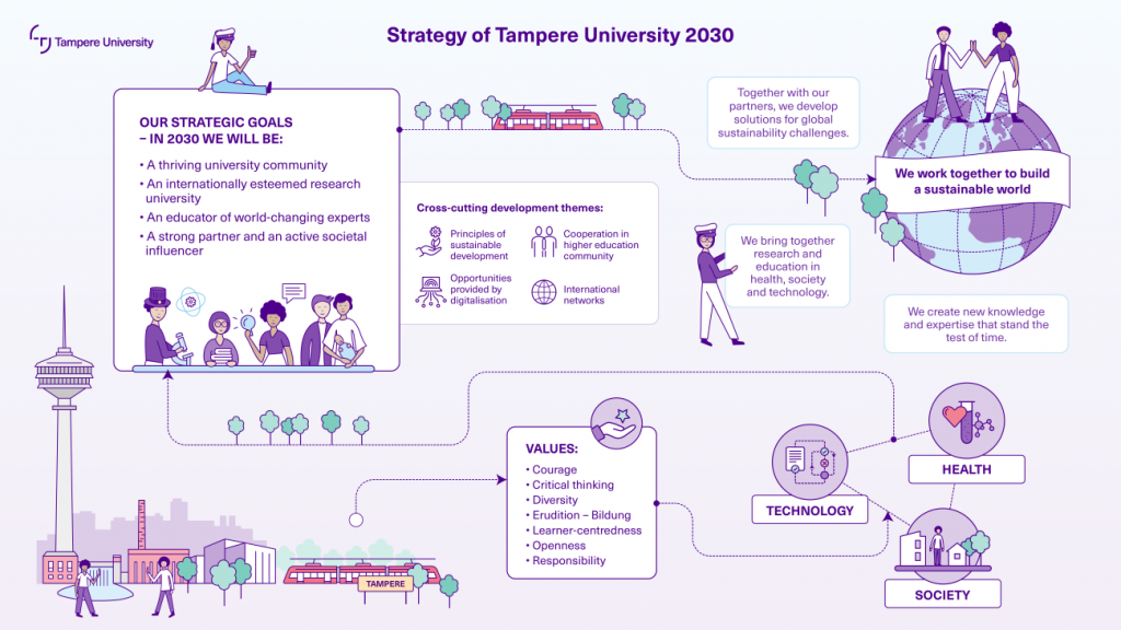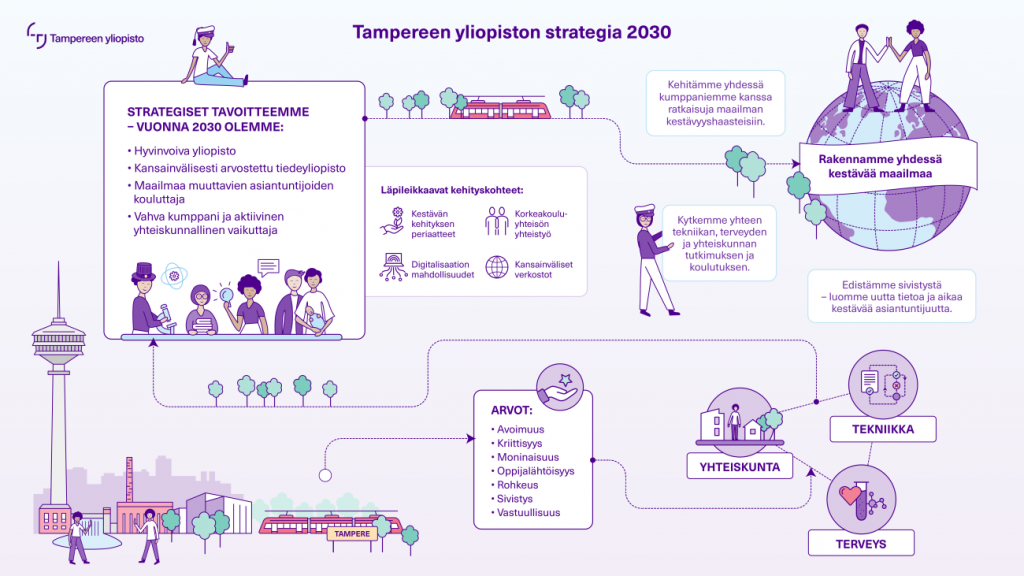 Tampereen korkeakoulusäätiön hallitus on vahvistanut yliopiston päivitetyn strategian ja sen yliopistotason indikaattorit helmikuusssa 2023.
