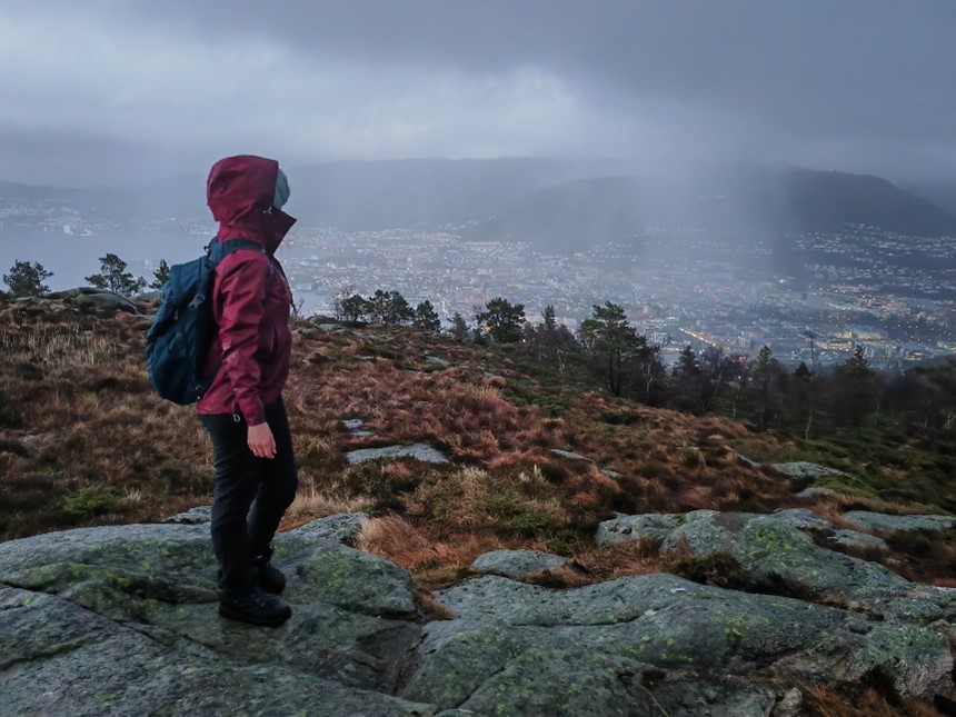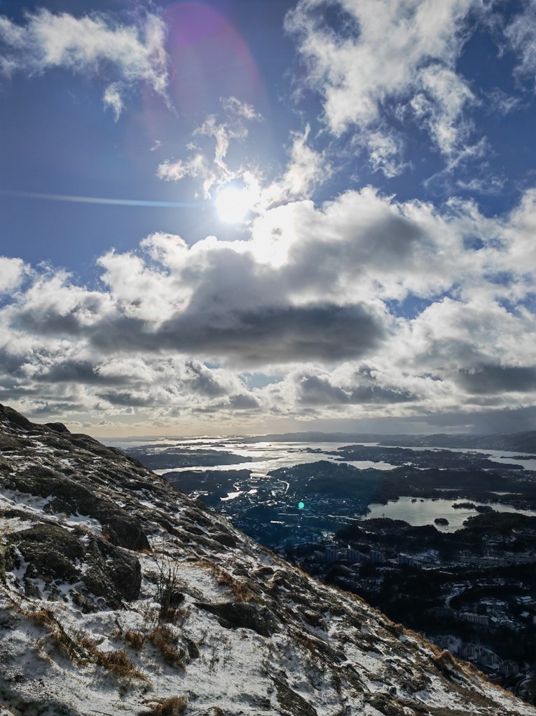Sää Bergenissä oli todella vaihteleva, välillä satoi ja tuuli kovasti, välillä oli kauniita aurinkoisia päiviä ja välillä aamulla maa saattoi yhtäkkiä olla valkoisena. Bergenissä lumi ei kuitenkaan yleensä pysy paria päivää kauempaa ainakaan kaupungissa, mutta ylhäällä vuorilla saattaa pysyä paljon kauemmin.