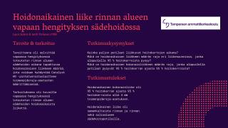 Täältä löytyvät syksyn 2020 aikana valmistuneiden opinnäytetöiden posterit. Opinnäytetöiden raportit löytyvät https://www.theseus.fi/ palvelusta.
