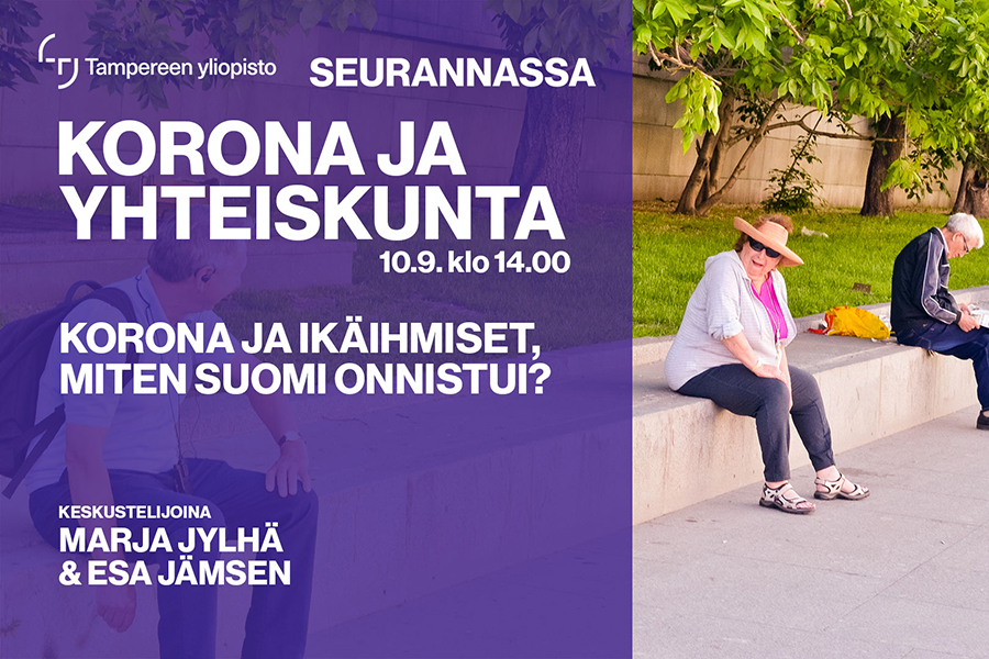 Koronaviruksen vaikutuksesta ikääntyviin ja yhteiskuntaan keskustelemassa gerontolgian professori Marja Jylhä ja geriatrian professori Esa Jämsen.