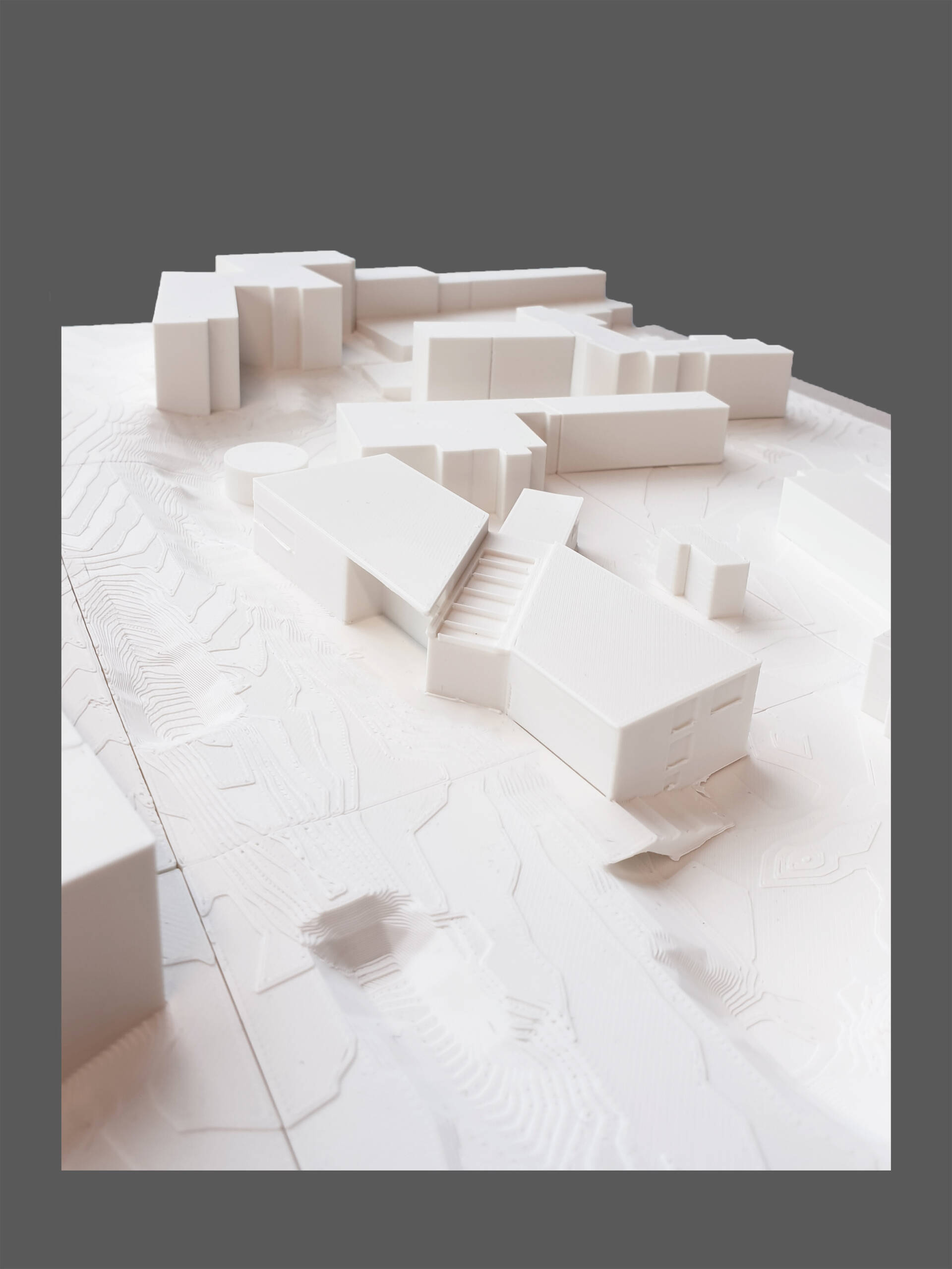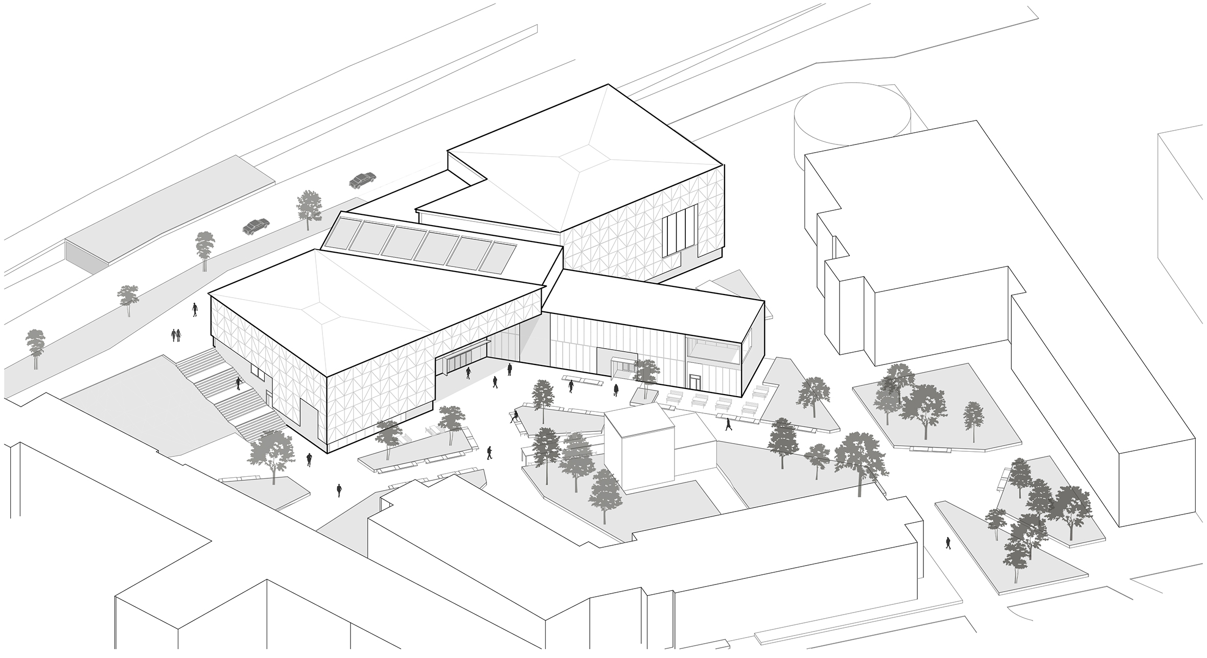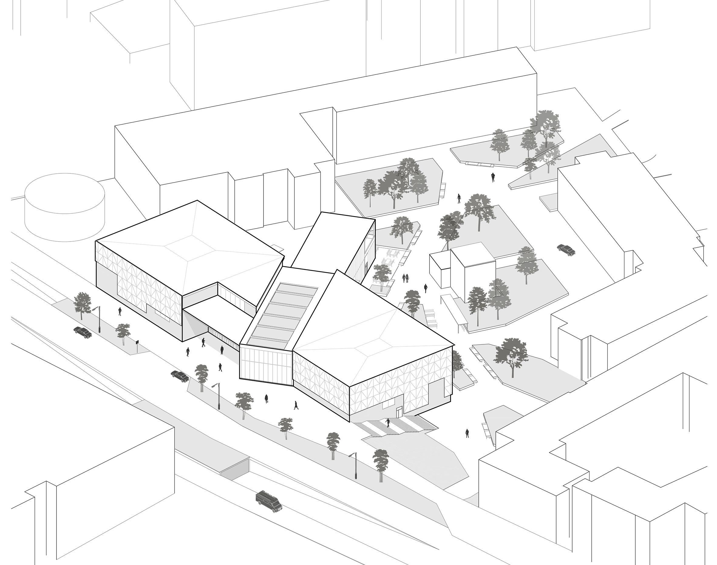 Demos media and research centre with its diagonal pedestrian route through plot serve as a communal meeting place and offers comprehensive and cultural experiences for city residents. We chose the name Demos for it means common people, our target audience. Our most important aim was to create an experiential environment and a gateway from cityscape to another. The mass of the building naturally began to follow the pedestrian route.