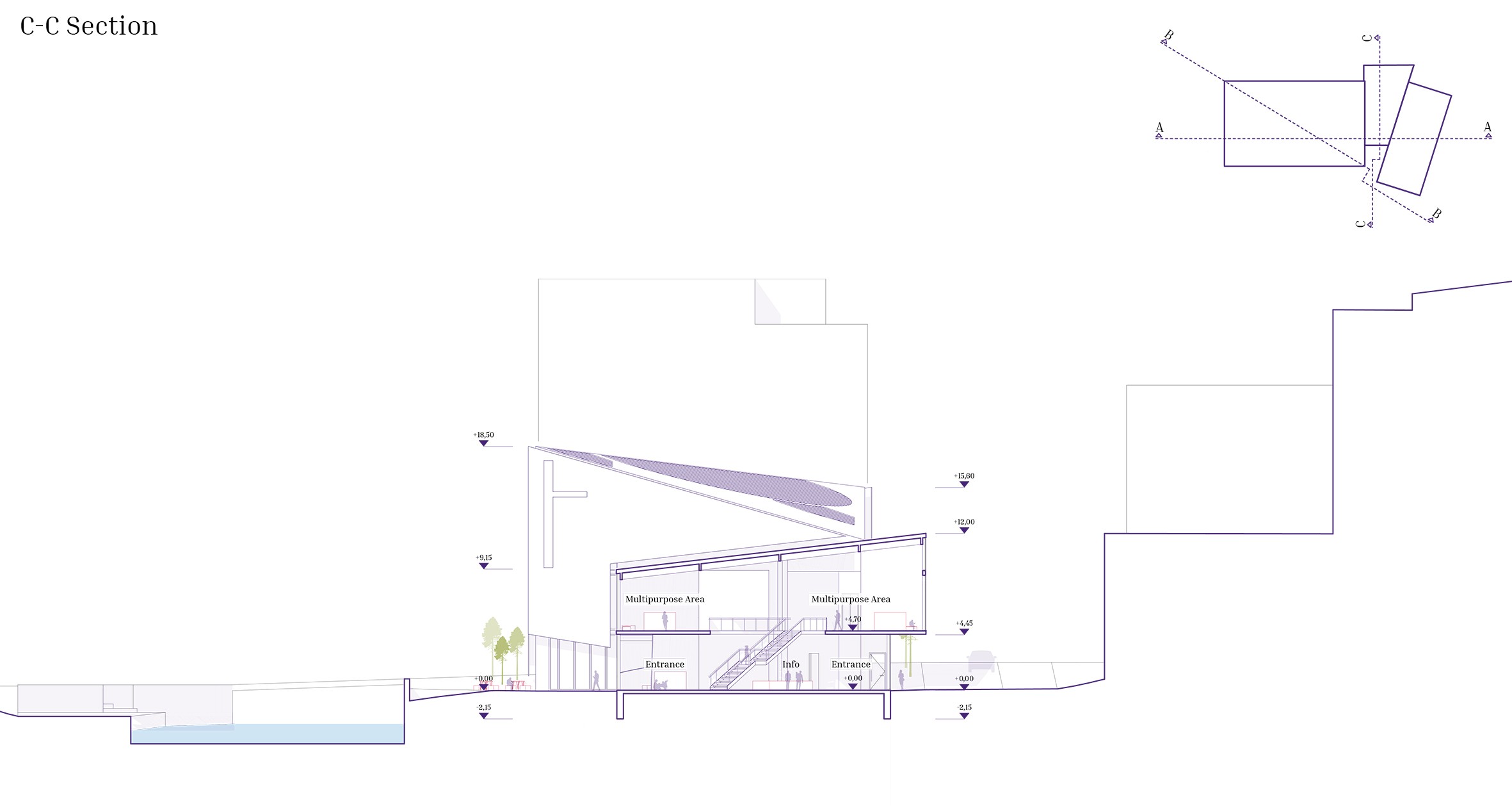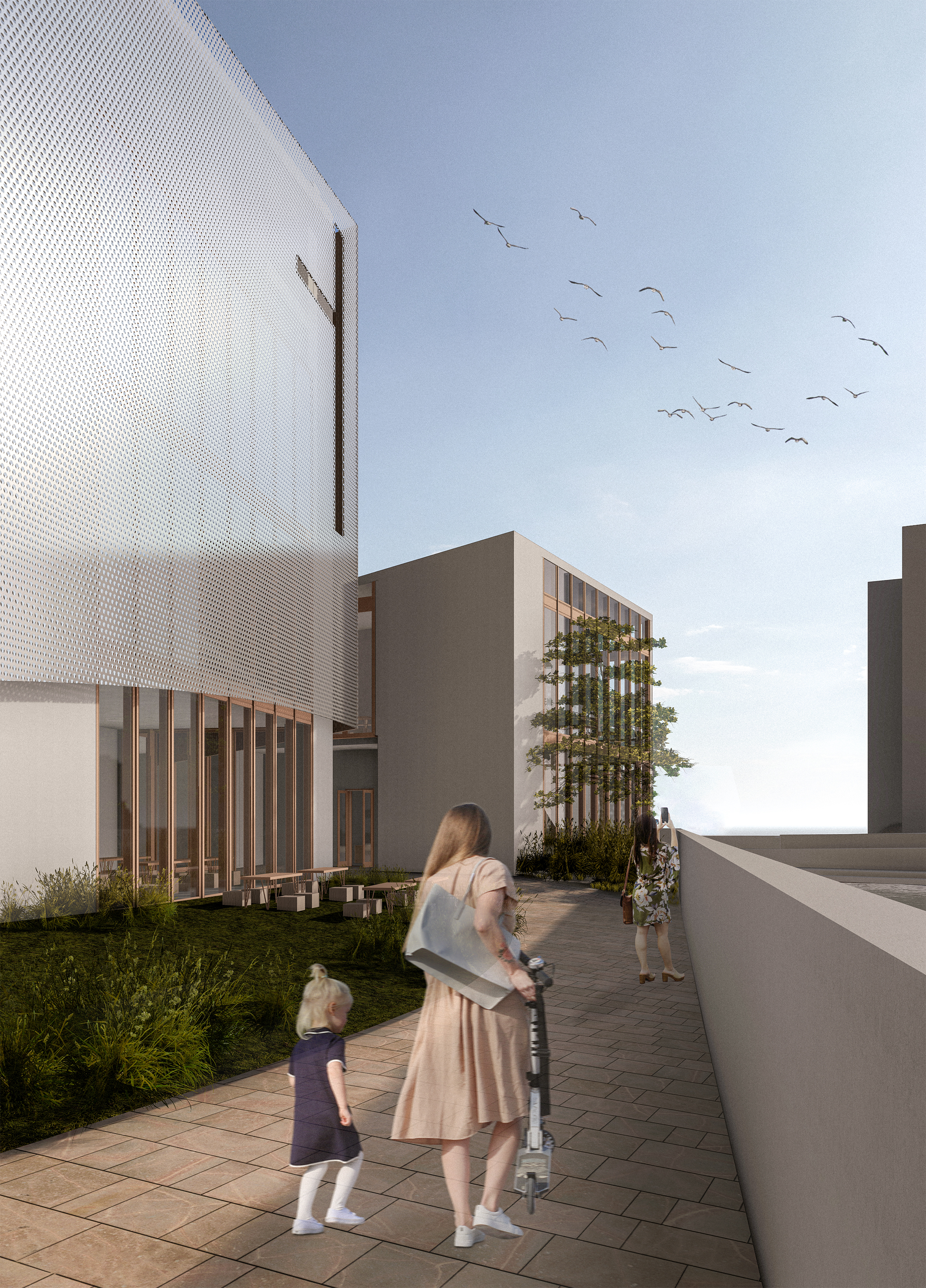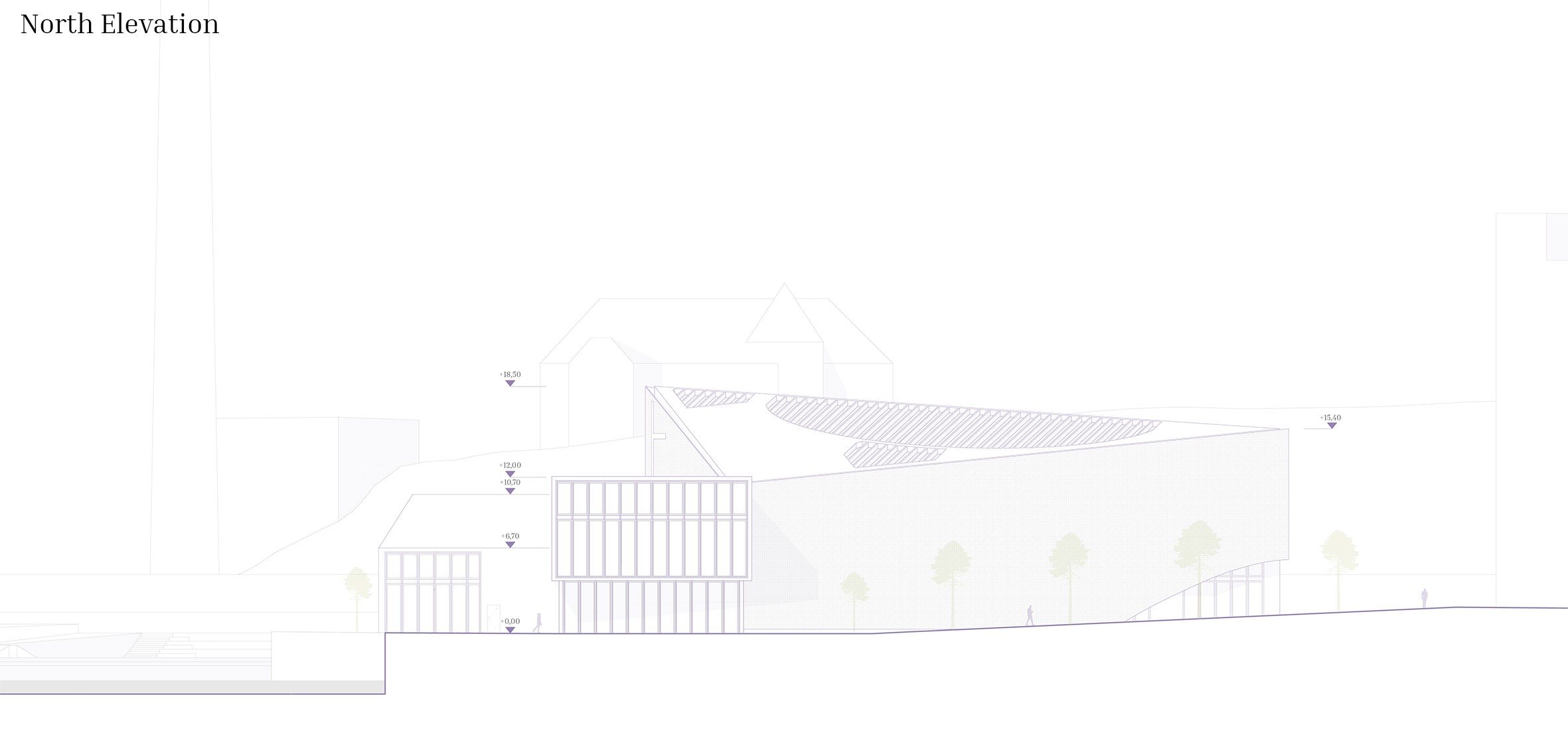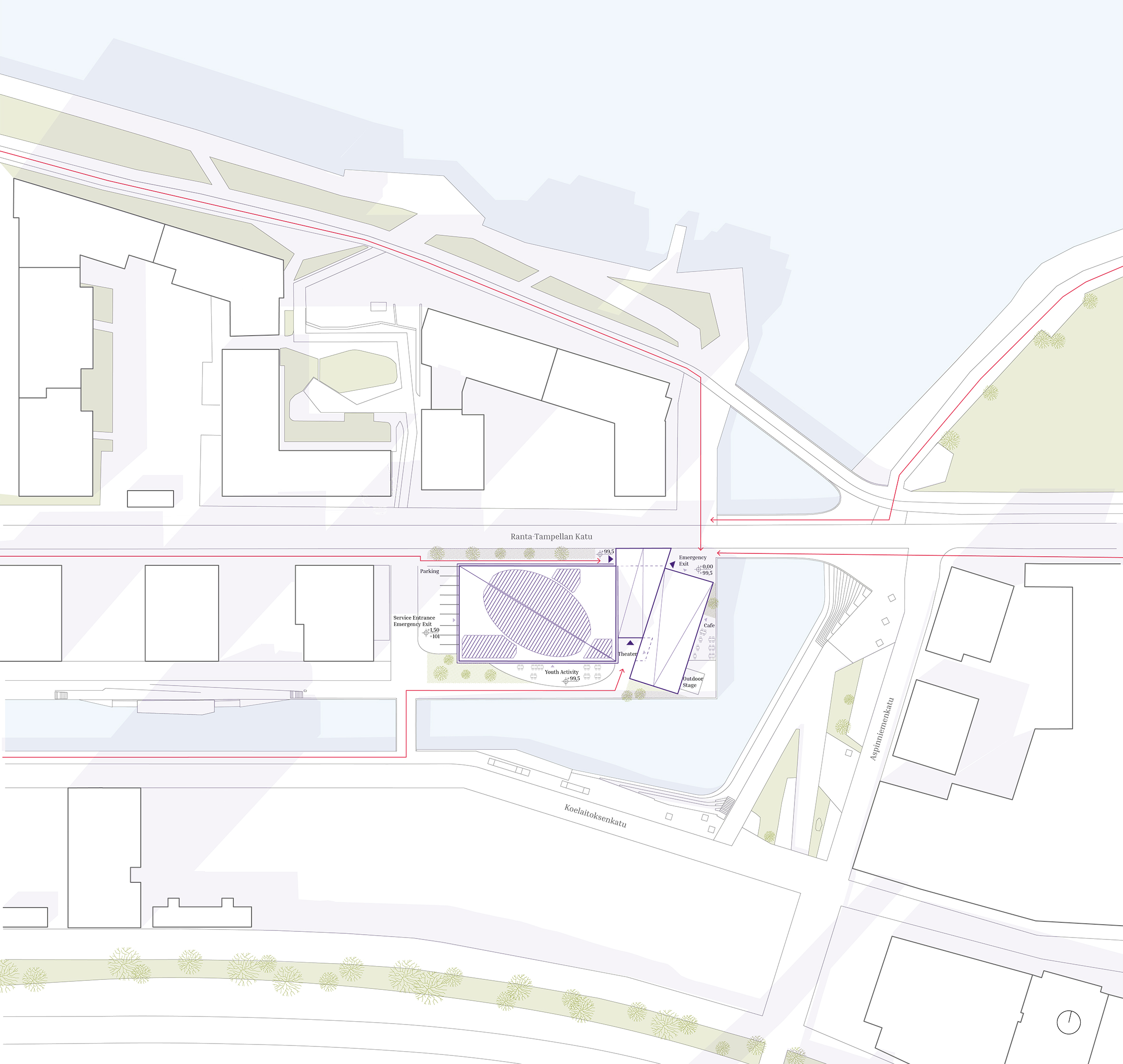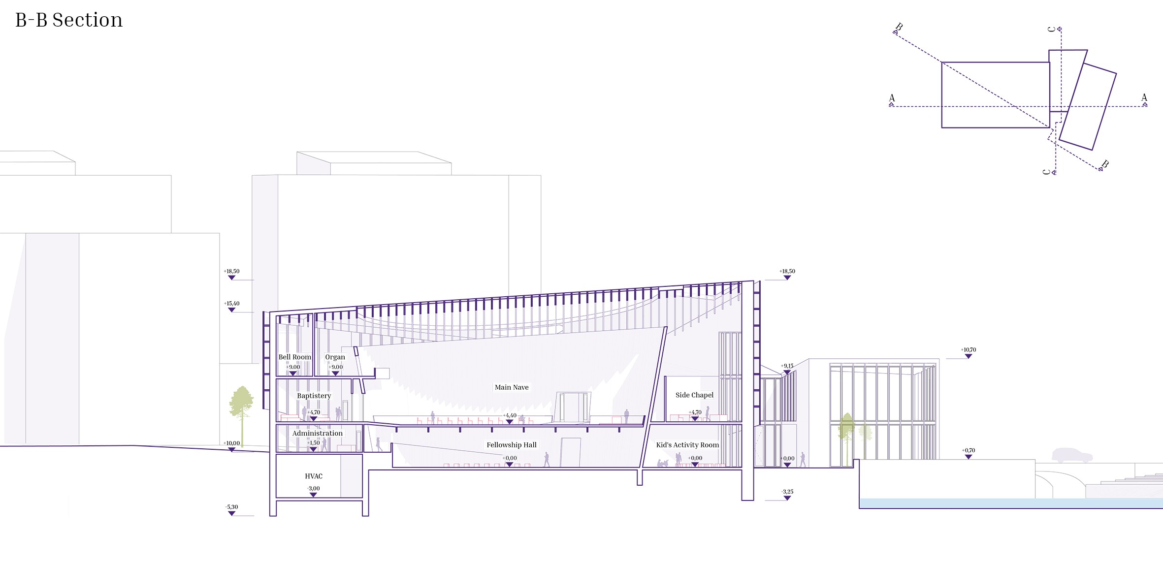 This architectural project envisions a modern-day church in Tampere, Finland, rooted in the biblical narrative of Noah’s Ark. Recognizing the exclusivity of the area, the design seeks to foster inclusivity by addressing contemporary global issues, such as climate change, flooding, and displacement. Drawing parallels between the Ark and the escalating challenges of climate crises and climate refugees, the project aims to create a space where individuals can gather, find safety, and nurture mutual understanding. The central concept positions the church as a metaphorical ship – a sanctuary of refuge and hope. Complementing this is the “harbor,” which houses commercial spaces, and the “dock,” a transitional area that bridges the church and harbor. This symbolic and physical integration reflects the ethos of connecting the sacred with the secular, creating a dynamic space that is welcoming, transformative, and accessible to all. Through its innovative use of metaphors and spatial design, the project not only addresses the urgent need for inclusivity but also emphasizes unity, resilience, and shared human experiences. It aspires to provide a safe haven where people from diverse backgrounds can come together, build connections, and reflect on the shared challenges and opportunities of the future. By blending functionality with meaning, this modern Noah’s Ark offers a beacon of hope and community in an evolving world.