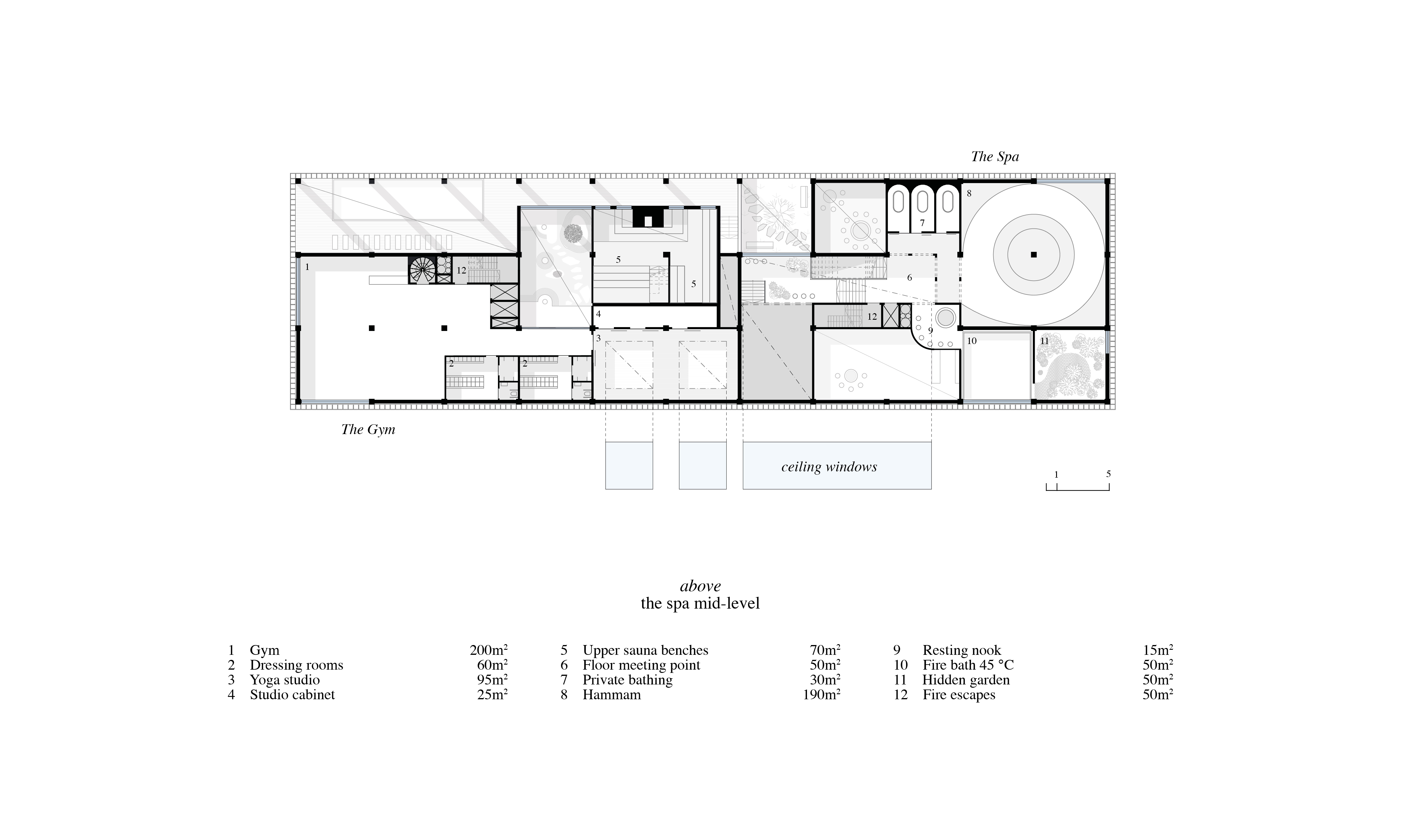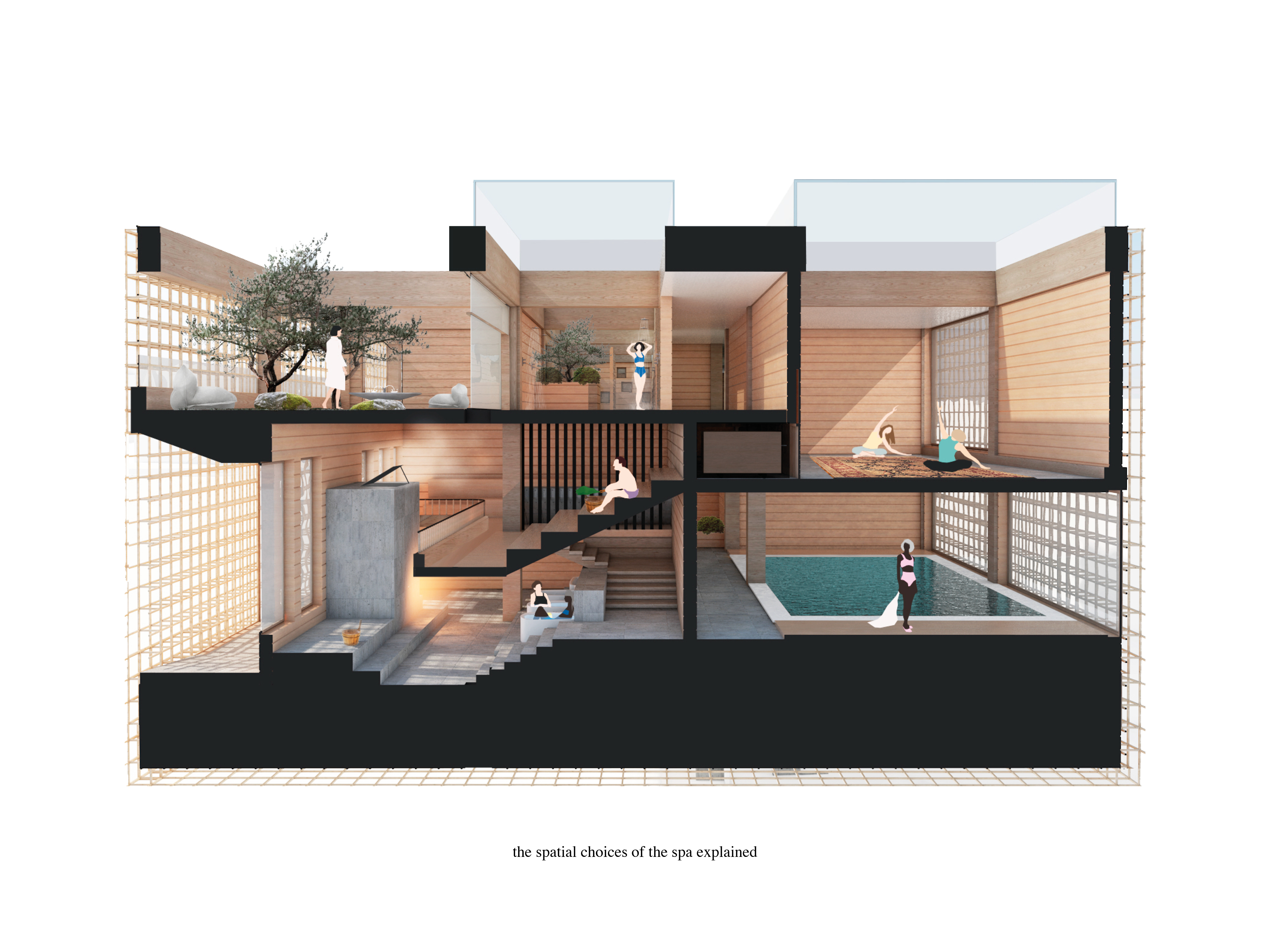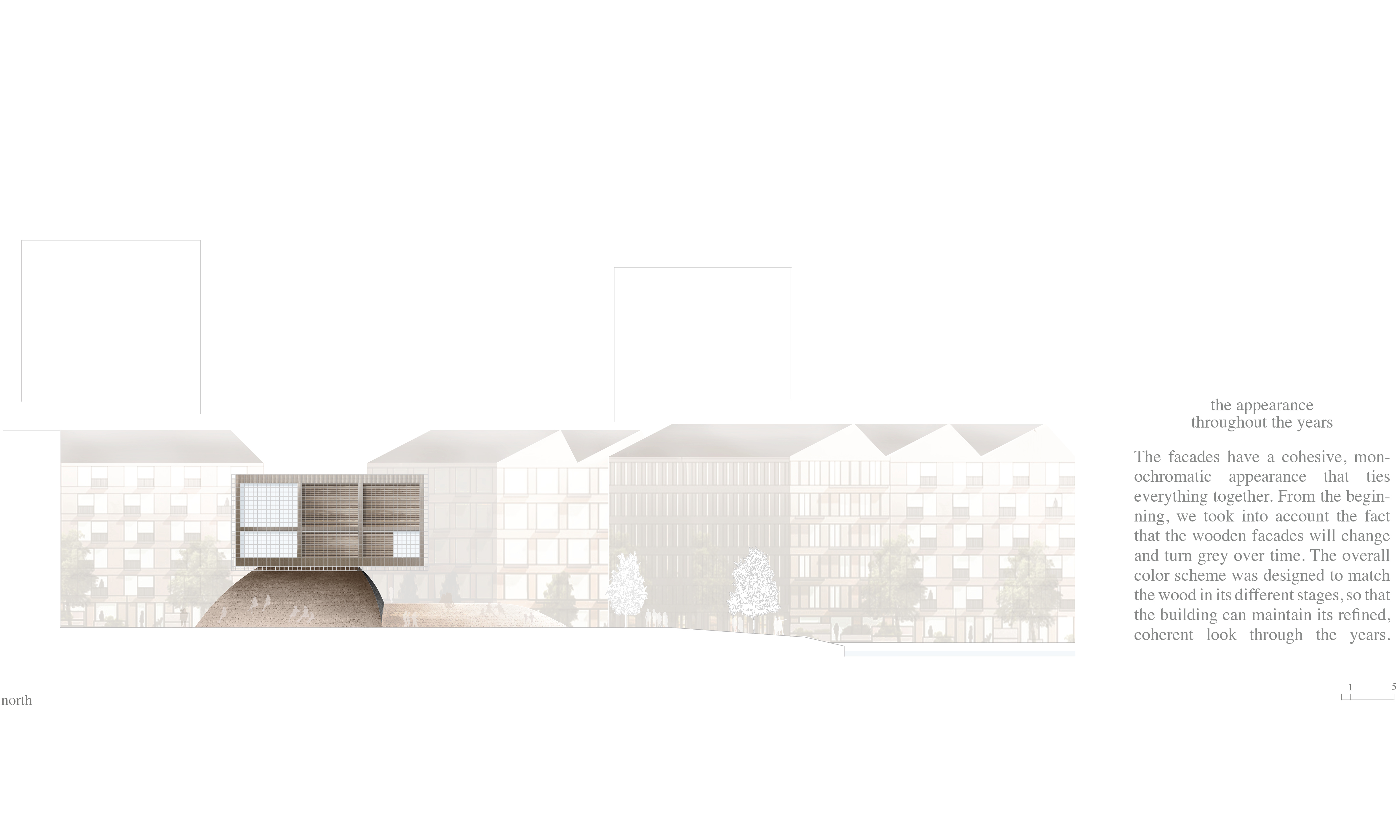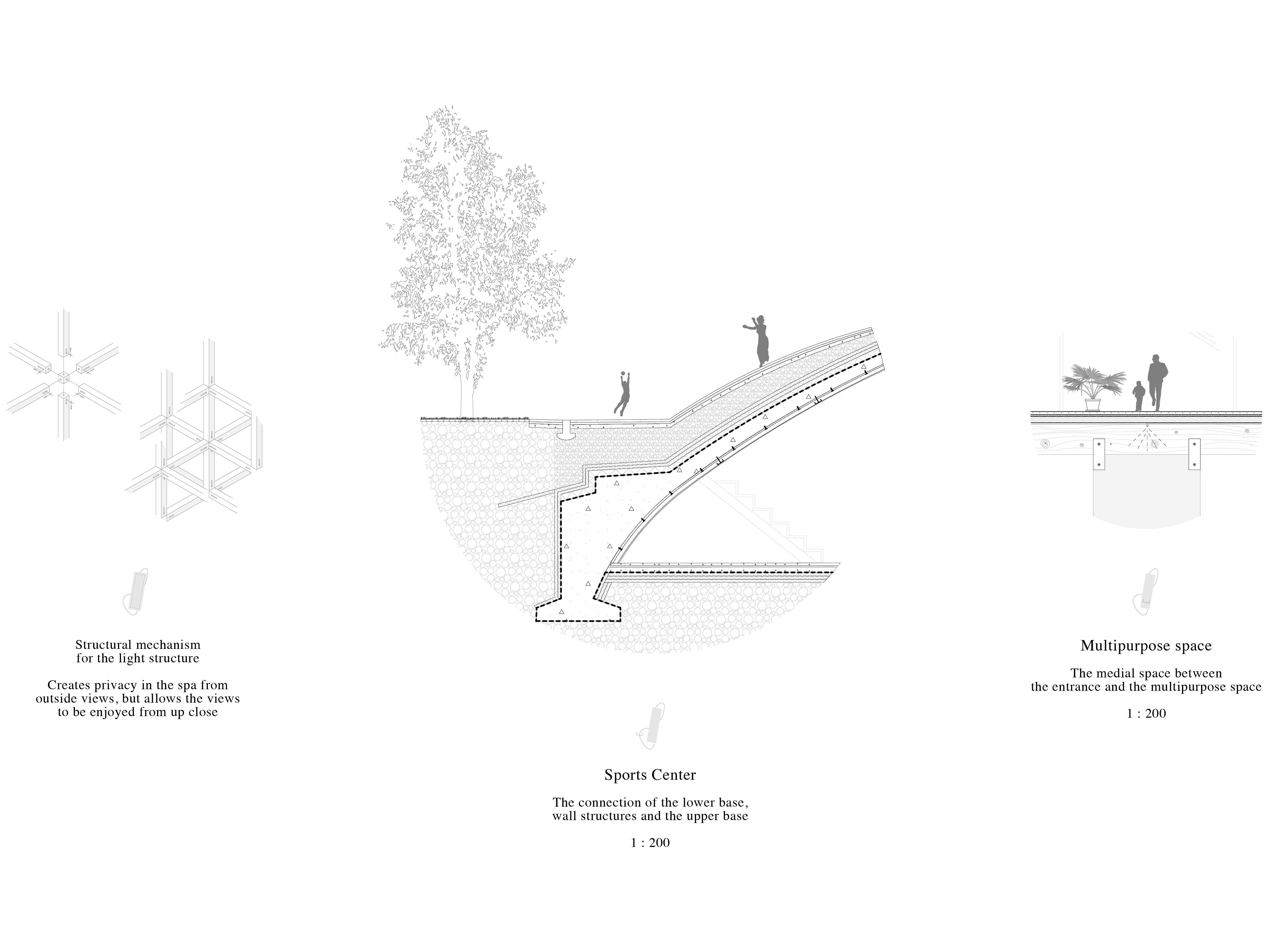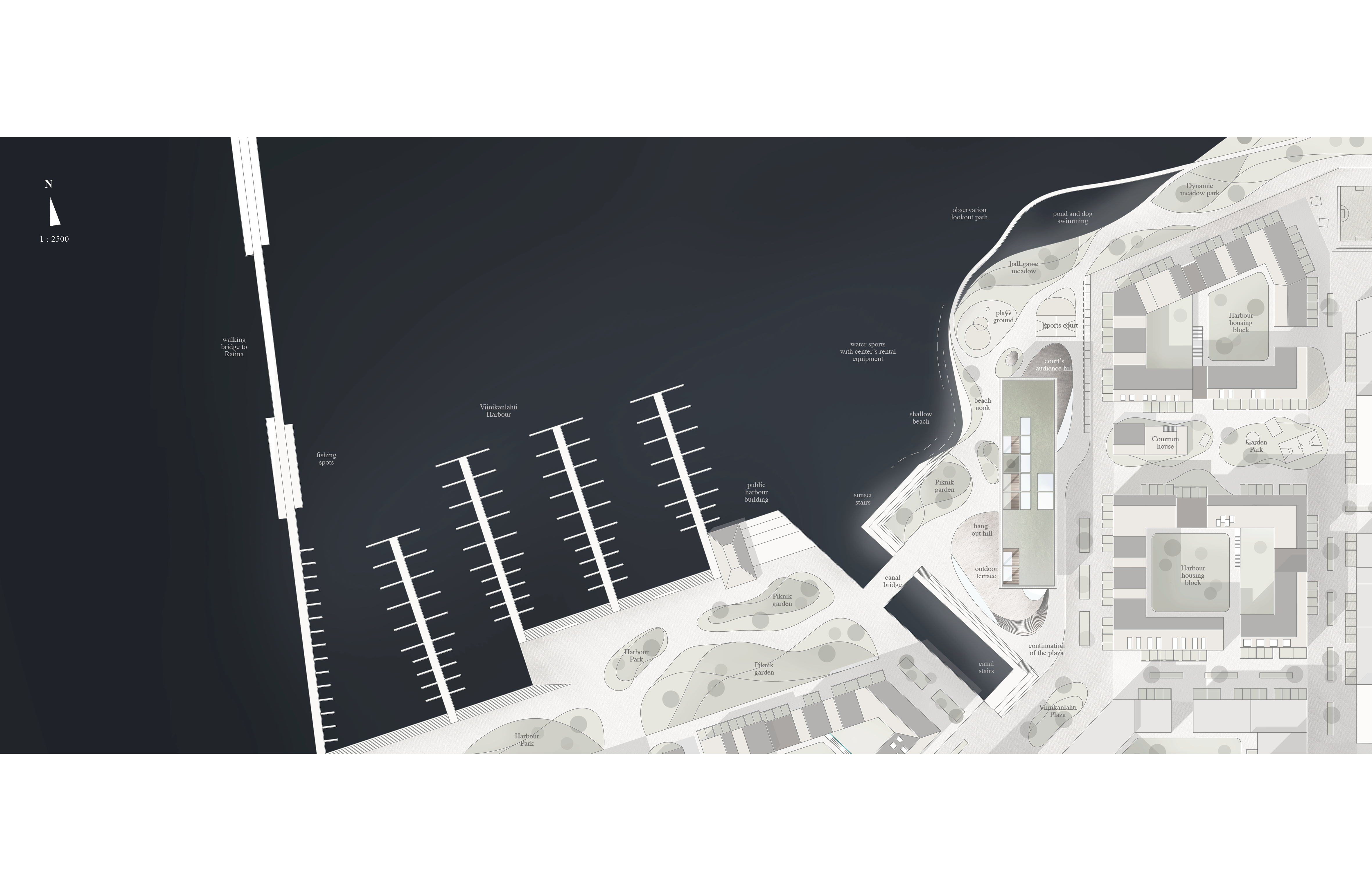 The name of the design and the main concept come from the Finnish national lakeside scenery, which brings together outdoor exercisers, sauna goers and swimmers just like our new building would. The familiar lakeside view can be divided into three parts: lake below, nature between and sky above. The above – between – below re-imagines and combines these three parts and the elements they hold in the Finnish lakeside scenery and also in the national Finnish scenery of Tammerkoski.