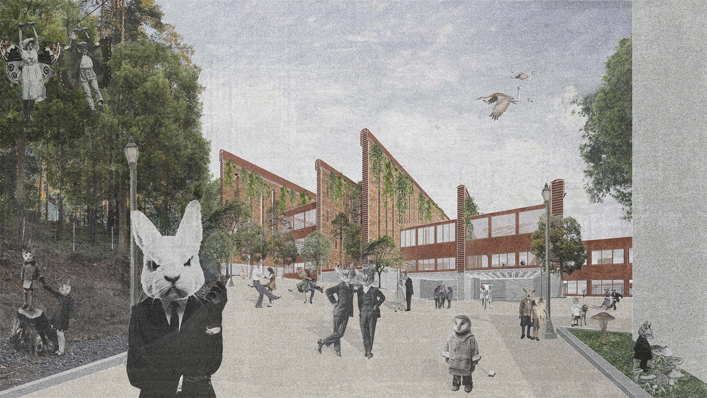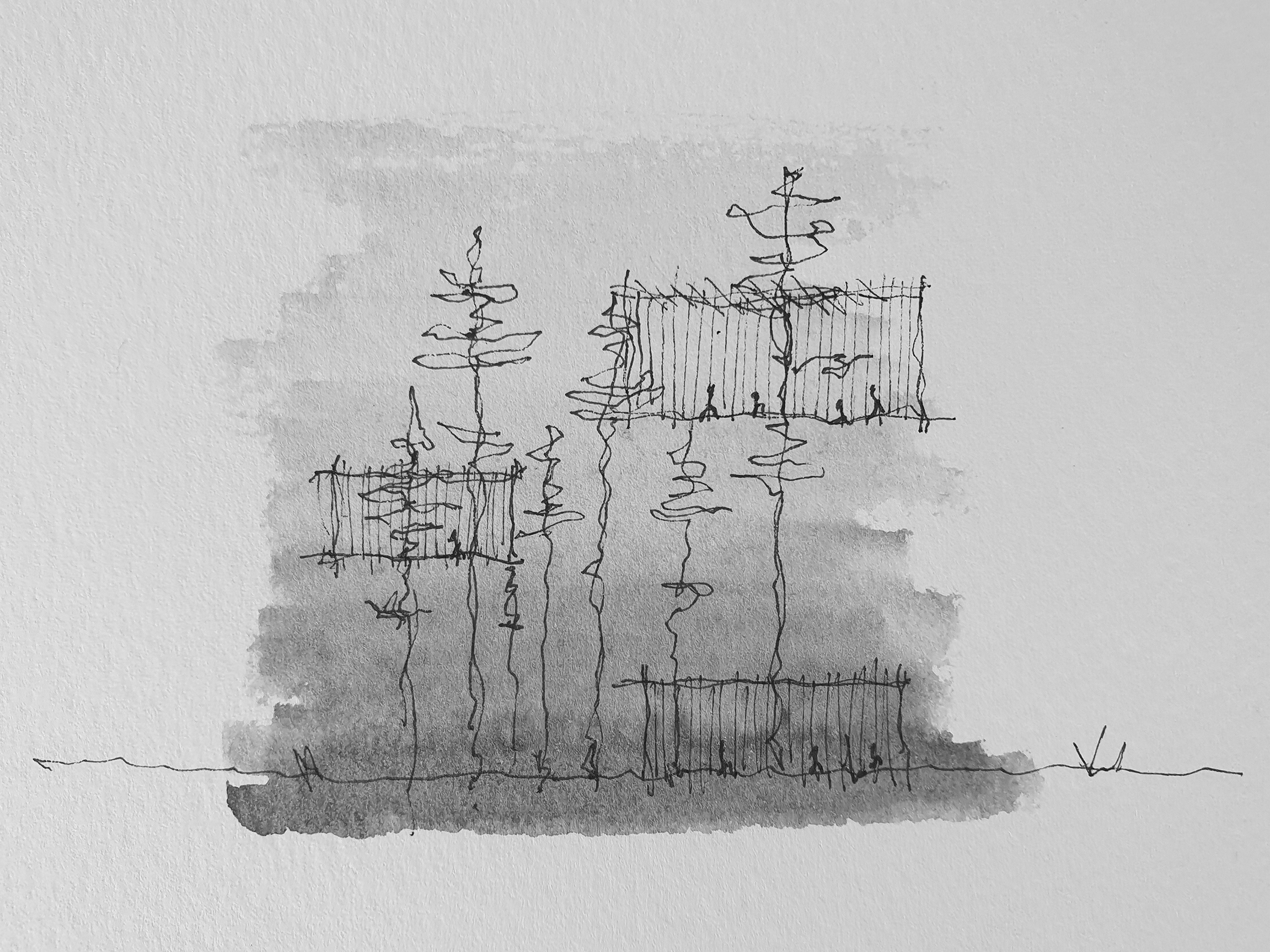 Finnish close relation between nature and user is the main concept of the project that generates its generic form. The elevation of the building tries to remind those high and slim Finnish trees looking for light. Conceptual trees are materialized in the building by wood walls made of logs.