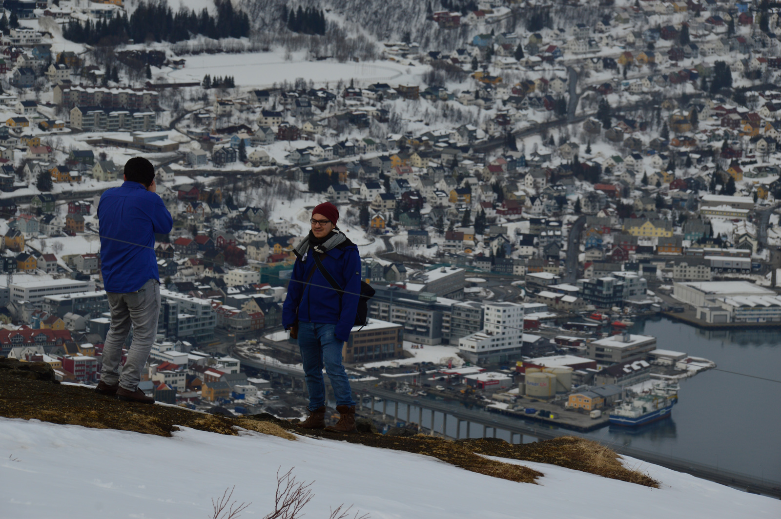 On the next day we went in a walking tour around the city with all the companions for the course, we saw interesting places with a very local but fun explanation, like the brewery they have or the polar scientific research center. The last point we visited was the top of a mountain, after a very fast but entertaining trip on the Teleferic, we came into the view of the extension of Tromsø from the top of this beautiful mountain but the best part was to look this majestic view of nature. Mountains, fjords and even the colors in the sky mixed together to create a wonderful picture to the point that not even the city feels out of place. Trying to get a better picture of the scenery some of us decided to go further up to the mountain, must say it wasn’t easy at all but was 100% worth.