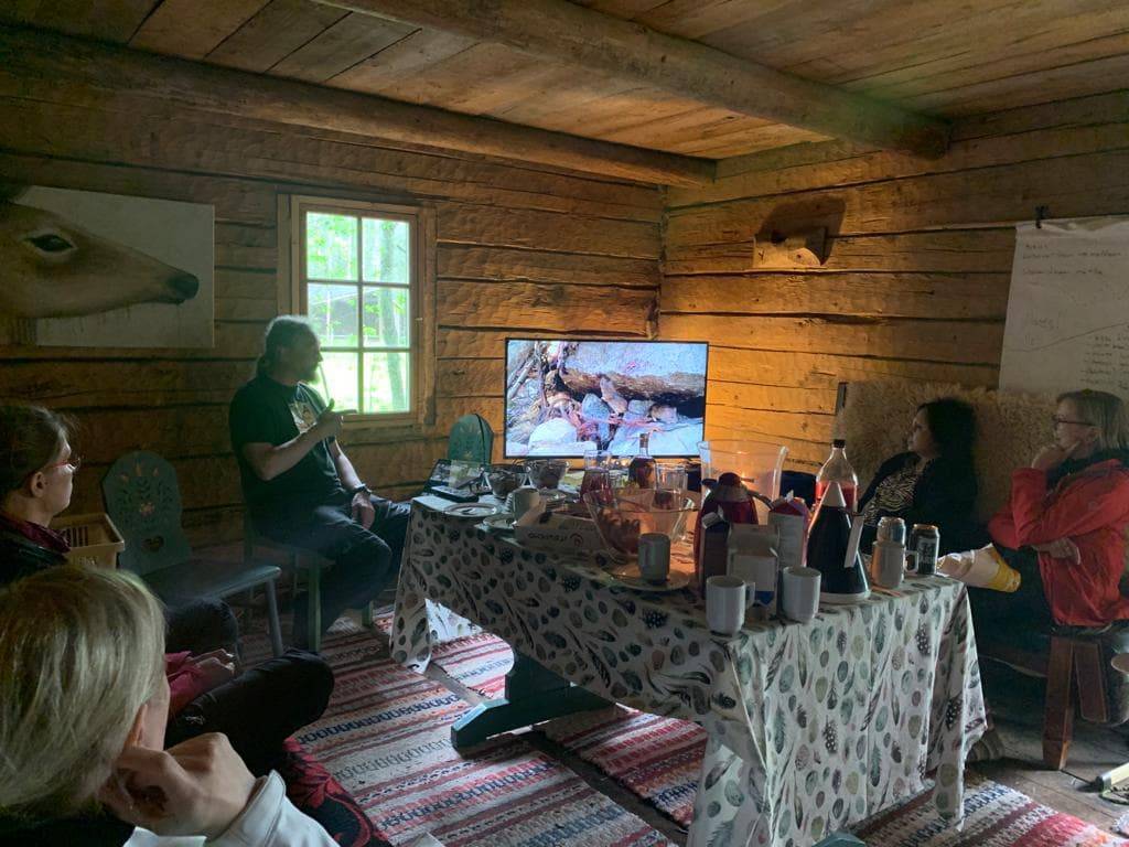 The farmhouse is owned by a team member, Juha Suonpää. In four hectares, there are horses, chickens, antique tractors, one 100year old log house, a hay shed and apple trees. The farmhouse is very rich with the antique collections, it was very interesting to know the stories behind each item. Moreover, it was amazing to sit on old stools made of whale bones.