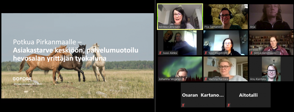 Keväällä 2020 alkanut COVID 19 -epidemia vaikutti myös Potkua Pirkanmaalla -hankkeeseen. Tarkoituksena oli järjestää huhtikuussa 2020 vielä yksi lähikoulutus TAMKissa, mutta epidemian takia tämä ei ollut mahdollista. Ketterästi toimien saimme ”koronatoteutuksena” palvelumuotoilukoulutuksen toteutumaan Zoom-alustalla. Kouluttajaksi saimme Mirkka Länsisalon Gofore Oy:stä. Tästä tuli uutta oppia ainakin järjestäjille, mutta varmasti myös hyvä kokemus koulutukseen osallistuville.