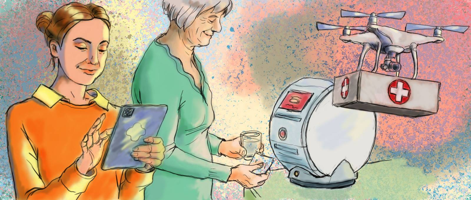 Kaiken digihössötyksen ja teknologiakehityksen keskellä täytyy kuitenkin muistaa, että teknologia ja sen käyttö ei korvaa ihmistä hoitotyössä. Sen avulla on vain tarkoitus auttaa asioissa ja niiden hoitamisessa. Ihminen on kaiken lähtökohta. Hoitotyössä ihmisen pitää myös kohdata toinen ihminen. Pelko ihmisten syrjäyttämisestä on aito, mutta oikein ymmärrettynä turha. On totta, että teknologian käyttöä hoito- ja hoivatyössä pitää vielä paljon kehittää. Myös meidän ihmisten suhtautumista siihen on jalostettava. Terve epäluuloisuus auttaa tekemään harkittuja päätöksiä, mutta välillä on hyvä hypätä tutkimaan uutta.