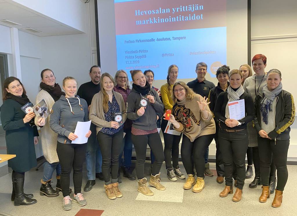 Iltapäivän aikana myös minä kouluttajana opin osallistujilta uutta hevosalan yrittäjyydestä. Alalle on tyypillistä harrastuksenomaisuus. Monet tallit on perustettu yrittäjän oman hevosalan harrastuneisuuden pohjalta. Silloin liiketaloudelliset lähtökohdat eivät yleensä ole ensisijaisia, vaan yrittäjää motivoi lähinnä mahdollisuus työskennellä hevosten kanssa.