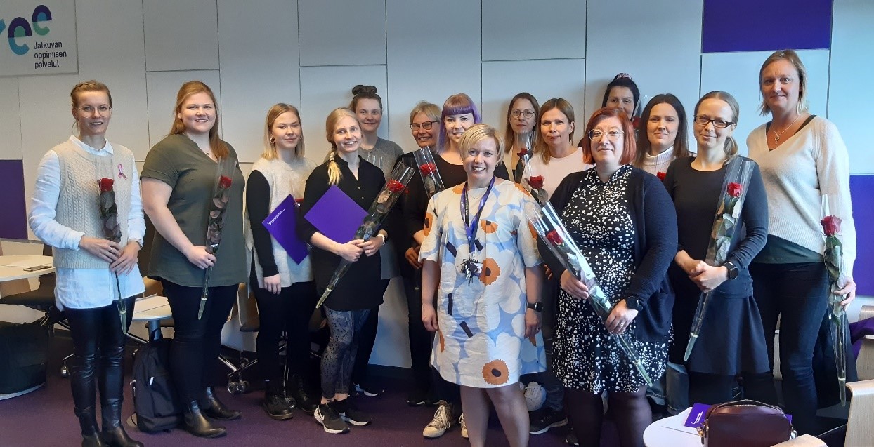 Koulutuksen päätöspäivässä totesimme, että kulunut vuosi on sisältänyt paljon työtä. Aina ei ole ollut helppoa sovittaa opiskelua, työtä ja perhe-elämää yhteen, mutta loppujen lopuksi siitä on selvitty hienosti. Tämä on vaatinut sitkeyttä. Totesimme, että vuosi meni yllättävän nopeasti. Vuoteen on mahtunut iloa ja onnistumisen kokemuksia. Mukaan jäi myös verkosto syöpään sairastuneen hoitotyön ammattilaisia eri puolilta Suomea.