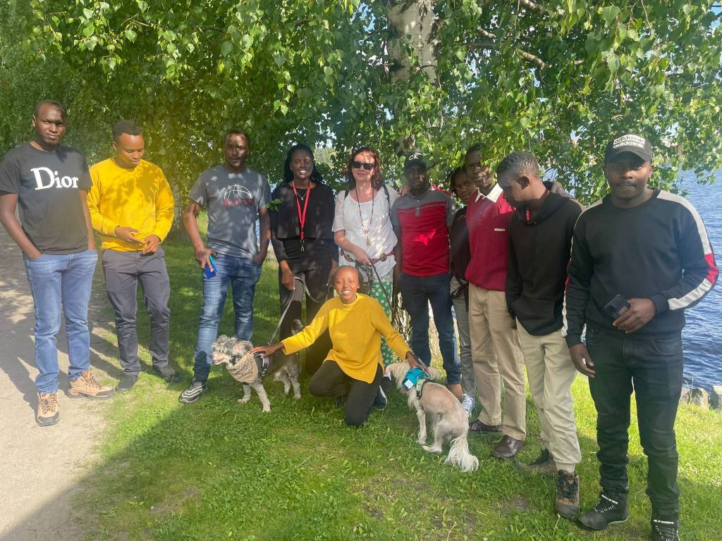 Kuvassa kenialaisia opiskelijoita Ursula Helskyn kanssa.