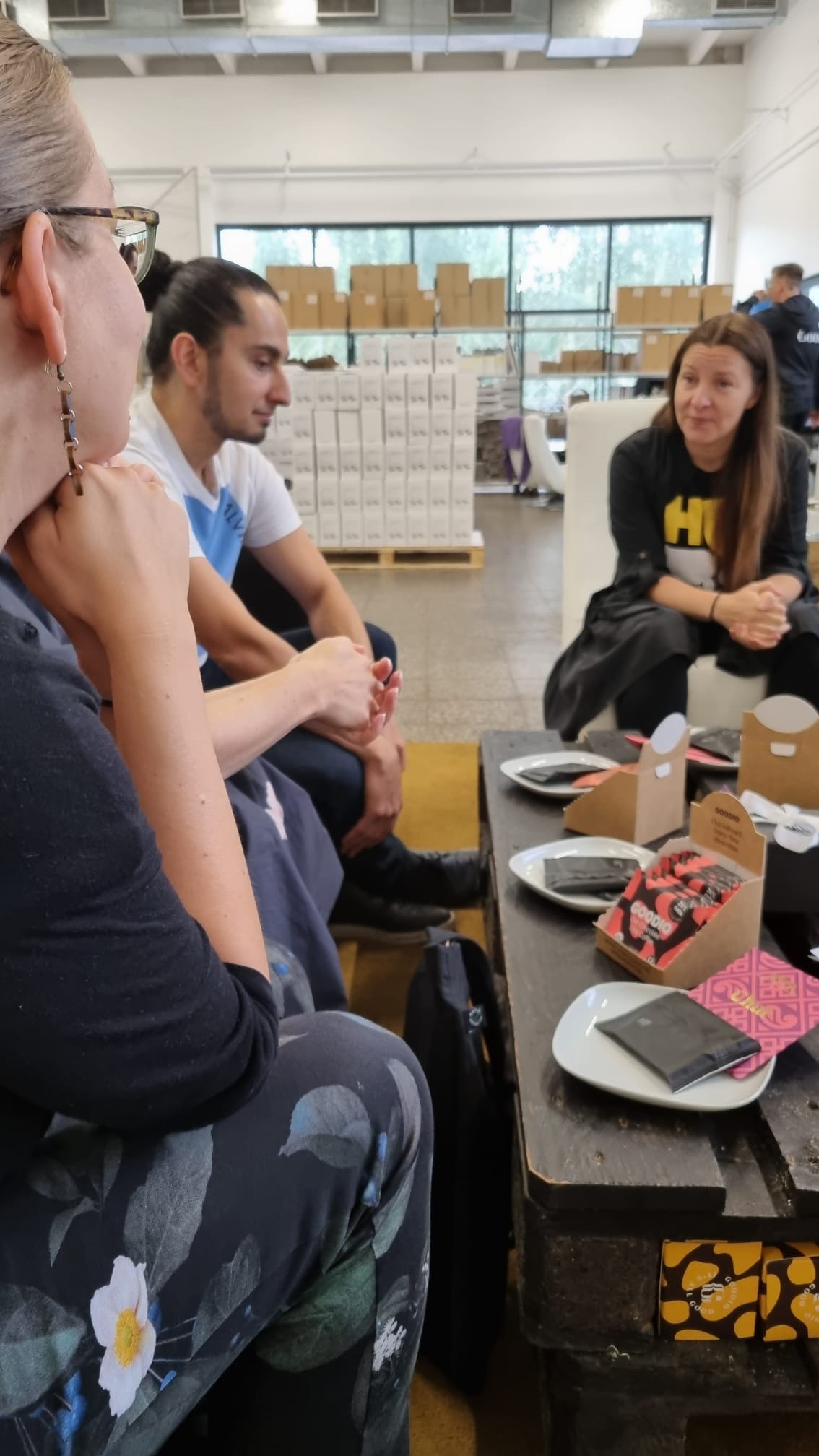 Suklaatehdas veti puoleensa ei vain makujen vuoksi, vaan halusimme kuulla Taru Pilven ensikokemukset yrittäjyydestä hänen siirryttyäään vuoden 2022 alusta Tampereen yliopiston innovaatiojohtajan roolista Goodion luovaksi johtajaksi. Olihan meillä ihasteltavaa: suklaata koivunlehdillä, karamellisoidulla rosmariinilla ja myös yhteistyö vaatebrändin kanssa.