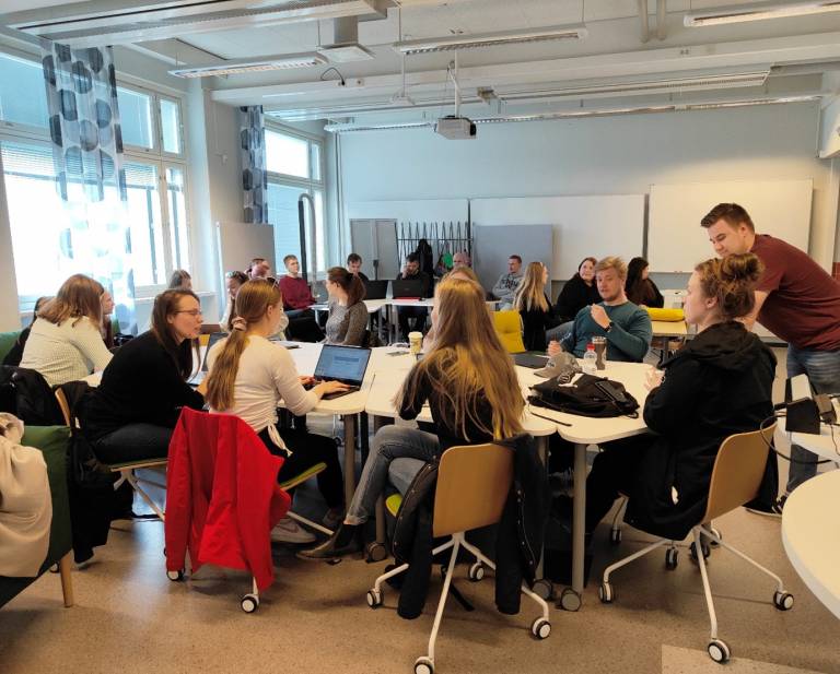 10.5.2023 Katalyytti siivitti laboratoriotekniikan opiskelijat upeisiin suorituksiin Aurinkoisena keskiviikkona TAMKin laboratoriotekniikan kolmannen vuosikurssin opiskelijoiden kevätlukukausi huipentui Katalyytin loppuseminaariin. Seminaarissa opiskelijatiimit esittelivät oppimistehtäviensä tulokset kummiyrityksille ja valmentajille. Päivän aikana saimme nähdä ja kuulla toinen toistaan innovatiivisempia laboratoriosuunnitelma- ja portfolioesityksiä. Opetus Opiskelu