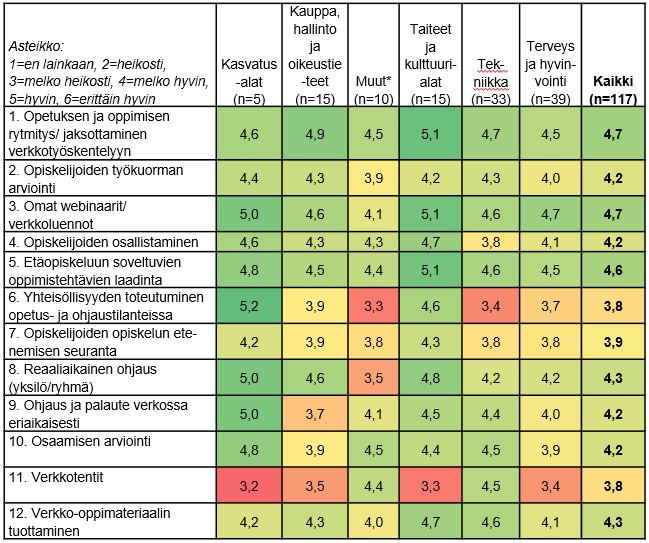 Valtaosalle vastaajista siirtymä on mahdollistanut uuden oppimisen. Poikkeusaikana käyttöön otetuista digipedagogisista ratkaisuista moni jää käyttöön pysyvästi (esimerkiksi webinaarit, videotallenteet, äänitallenteet, opetusvideot, flippaus, verkkokeskustelut, arviointi- ja palautekeskustelut). Osa vastaajista koki omat (digi)taidot jo entuudestaan hyviksi, työkalupakkinsa toimivaksi ja siirtymän helpoksi. Toisaalta osa vastaajista koki etäopetusjärjestelyiden vaativan enemmän joustoa ja paljon työtä, ja opetustyötä on tehty oman hyvinvoinnin kustannuksella.