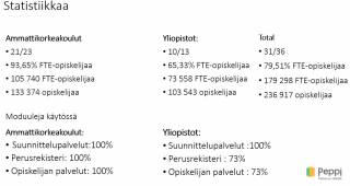 TAMKin ICT-päällikön Virve Peltoniemen (2019) mukaan Peppi on kasvanut muutamassa vuodessa merkittävimmäksi korkeakoulujen koulutuksen toiminnanohjausjärjestelmäksi ja palvelukokonaisuudeksi. Yli 30 korkeakoulua (n. 80%) on ottanut sen käyttöönsä ja liittynyt kehittämiskonsortioon. Peppi on herättänyt kiinnostusta myös maailmalla ja sitä on testattu muun muassa Islannissa.
