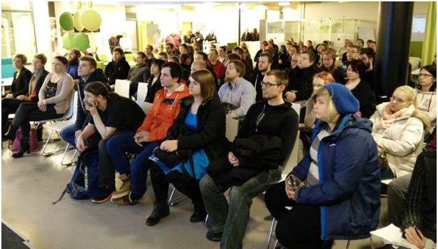 Opiskelijoita kehittäjätapahtumassa Tampere Smart City Hackalon 3.11.2015 projektit Tietojenkäsittely